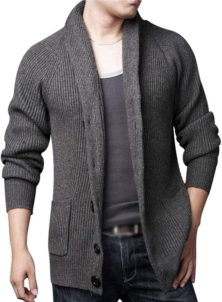 Umifyxioy Herren Strickjacke - Lang Cardigan, Grobstrick - Slim Fit Mit Taschen Für Winter