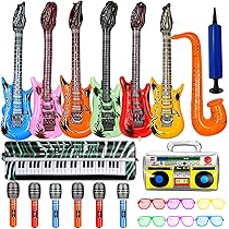 Die Instrumente sind aus weichem, reißfestem Material - super robust für wildes Rockstar-Gefeuere! Nach der Party einfach die Luft rauslassen und platzsparend verstauen. Perfekt als Fotorequisiten, um unvergessliche Bilder zu schießen, oder als Mitgebsel für kleine Gäste.