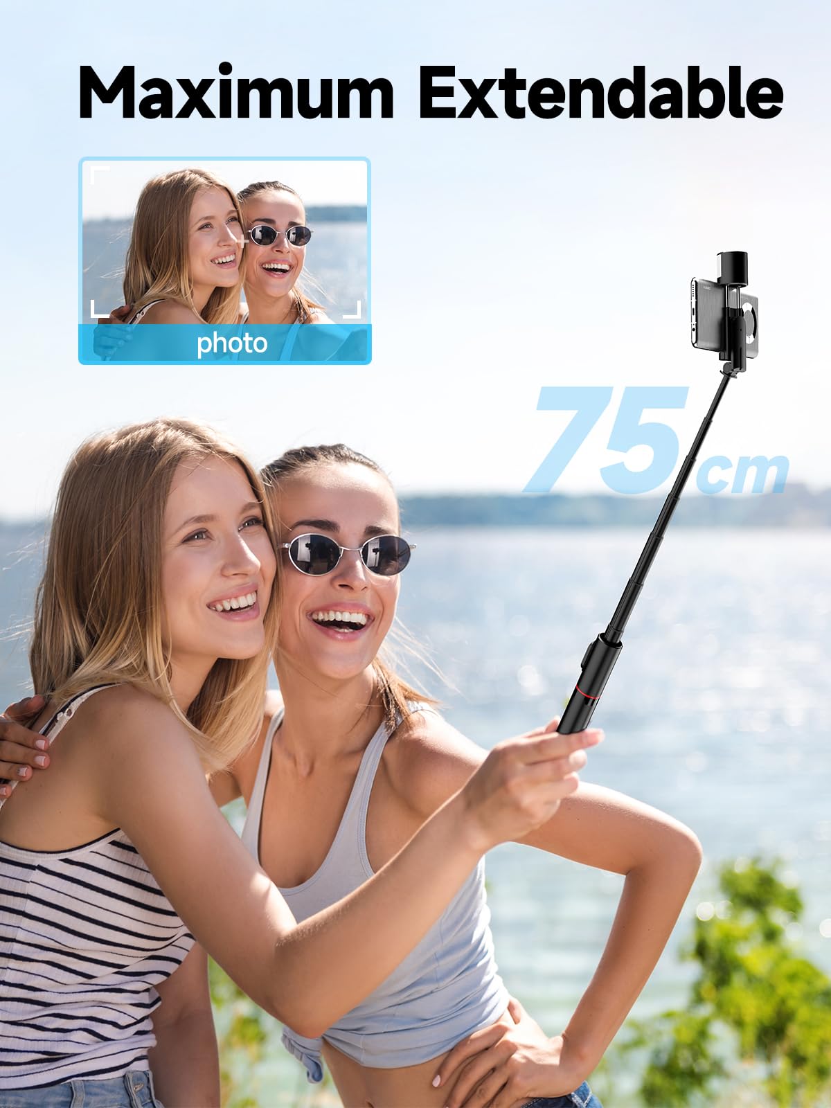 Perfekte Selfies aus jeder Perspektive! Der Moman Q12S Selfie Stick kombiniert Stabilität und Portabilität in einem cleveren Design. Mit 77cm Länge aus robustem Aluminium bietet er dir genau die Reichweite, die du für Gruppenbilder oder besondere Aufnahmen brauchst. Superleicht und zusammenklappbar - passt in jede Handtasche oder Rucksack. Der universelle Handyhalter passt auf die meisten Smartphones und hält sie sicher fest. Einfach das Handy einklicken, Winkel einstellen und los geht's! Ob für Reisen, Konzerte, Feiern oder einfach für den täglichen Gebrauch - dieser All-in-One Selfie Stick ist dein zuverlässiger Begleiter für kristallklare Aufnahmen. Mach dich bereit für die besten Fotos deines Lebens - ohne wackelige Hände oder unvorteilhafte Winkel!