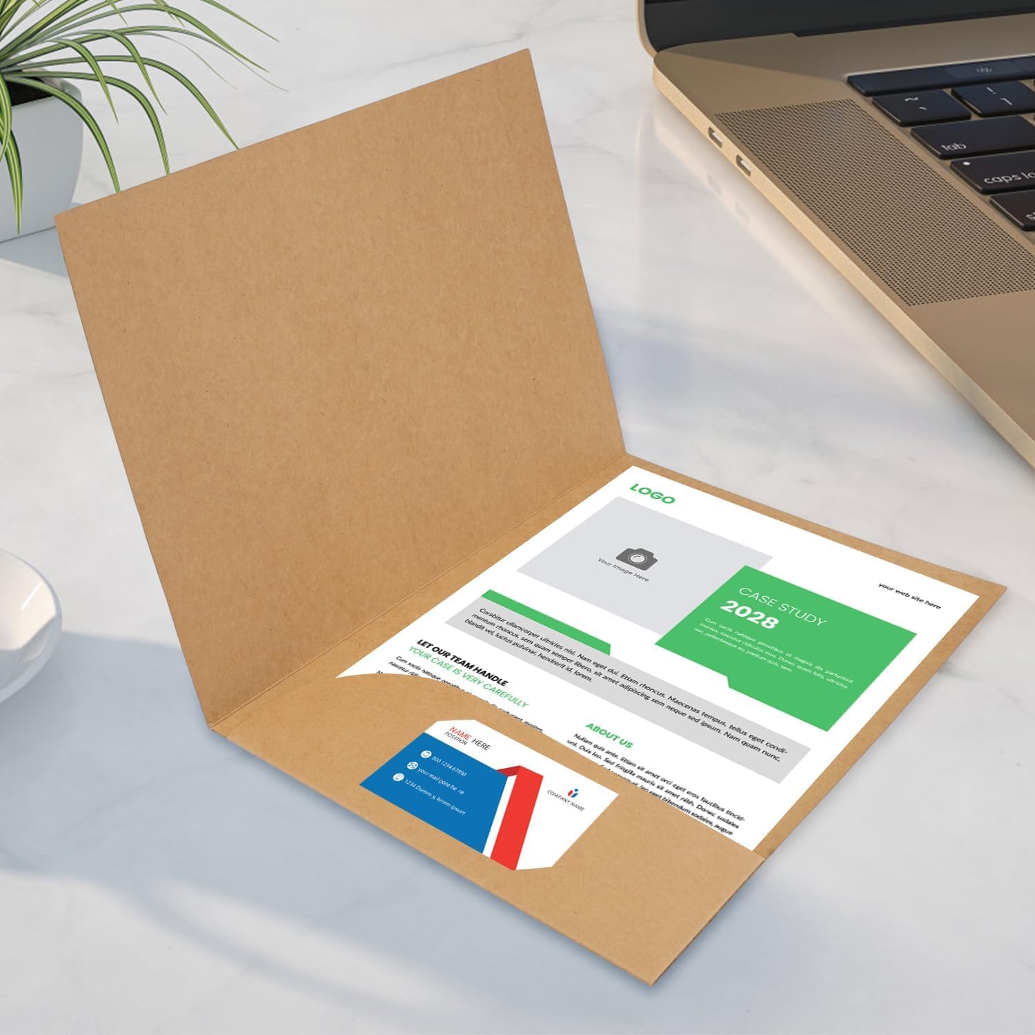 • 13 Stück A4 Dokumentenmappen Kraftpapier - Präsentationsordner Mit Aufklebern