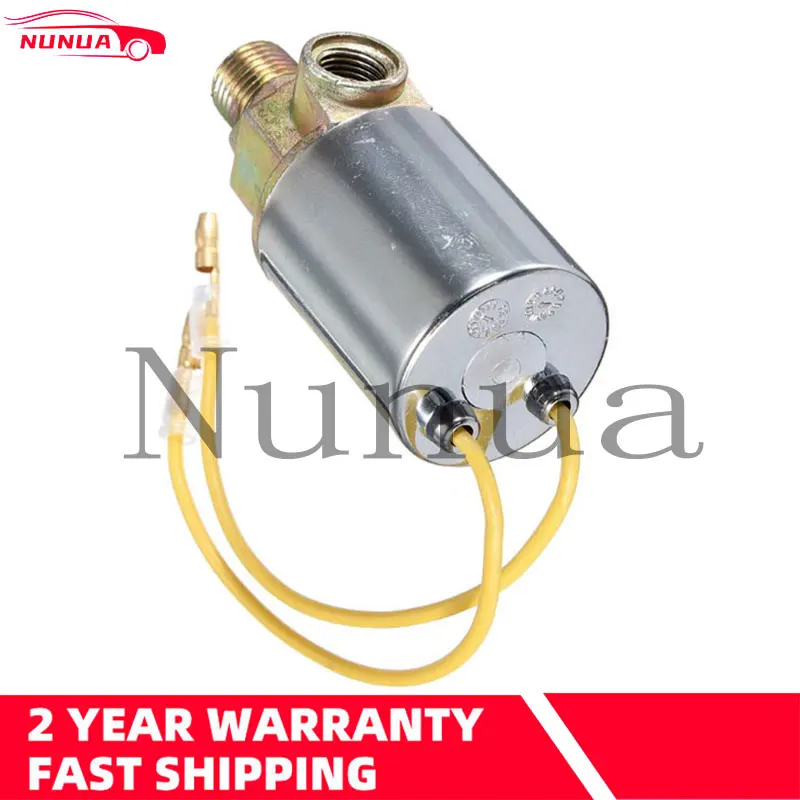 Professionelles Magnetventil für dein Lufthorn-System! Dieses EVGATSAUTO Magnetventil ist made für 24V-Fahrzeuge und hält bis zu 180 PSI stand - perfekt für LKWs, Busse oder schwere Nutzfahrzeuge. Aus hochwertiger Kupfer-Zink-Legierung gefertigt - extrem robust, korrosionsbeständig und langlebig. Technische Daten: Luftauslass 1/4\ NPT Stecker, Lufteinlass 1/8\ NPT Buchse, Größe 7,4 x 3cm. Einfache Installation - der Luftmagnet ist sofort einsatzbereit. Lieferumfang: 1x Magnetventil + 1x Barb Fitting. Das Zinklegierungs-Material sorgt für maximale Haltbarkeit auch unter rauen Bedingungen. Ideal für den Nachrüstung oder Ersatz defekter Ventile. Perfekte Performance für dein Air Horn System - laut, zuverlässig und sicher!