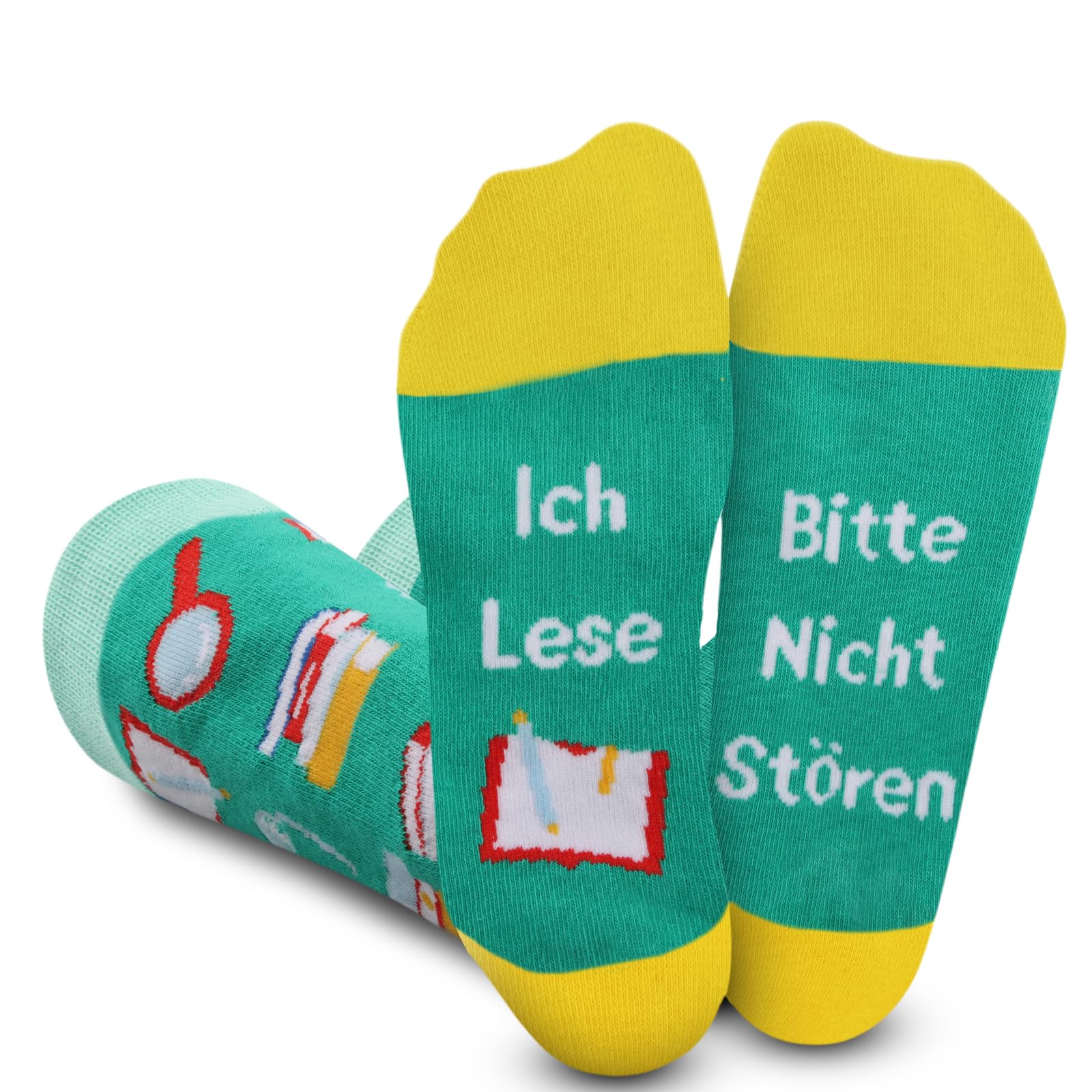 Diese personalisierten \\\Psst Ich Lese\\\-Socken sind das perfekte Geschenk für alle Buchliebhaber! Du kannst sie mit einem Namen individualisieren - einfach auf \\\Jetzt anpassen\\\ klicken.\n\nAus atmungsaktivem Polyester gefertigt, der schnell trocknet und für angenehm trockene Füße sorgt. Mit moderner Sublimationstechnologie bedruckt - die Farben bleiben brilliant und blättern nicht ab!\n\nDie Socken sind wadenhoch (10x41 cm) und haben schwarze Zehen- und Fersenbereiche für langanhaltende Farbechtheit. Der Vollflächen-Druck zeigt den witzigen \\\Psst Ich Lese\\\-Spruch.\n\nPerfekt für Lehrer, Bibliothekare oder einfach alle, die gerne in ein gutes Buch abtauchen. Super Geschenkidee für Geburtstage, Muttertag oder Weihnachten!\n\nEinfache Pflege: Maschinenwäsche kalt (auf links) mit ähnlichen Farben. Trocknergeeignet bei niedriger Temperatur. Nicht direkt auf das Design bügeln.\n\nMit jedem Waschgang bleiben die Farben so frisch wie am ersten Tag. Und der persönliche Name macht sie zu einem ganz besonderen Geschenk!\n\nAlso, überrasche deine Lieblings-Leseratte mit diesen einzigartigen Socken - sie werden begeistert sein!