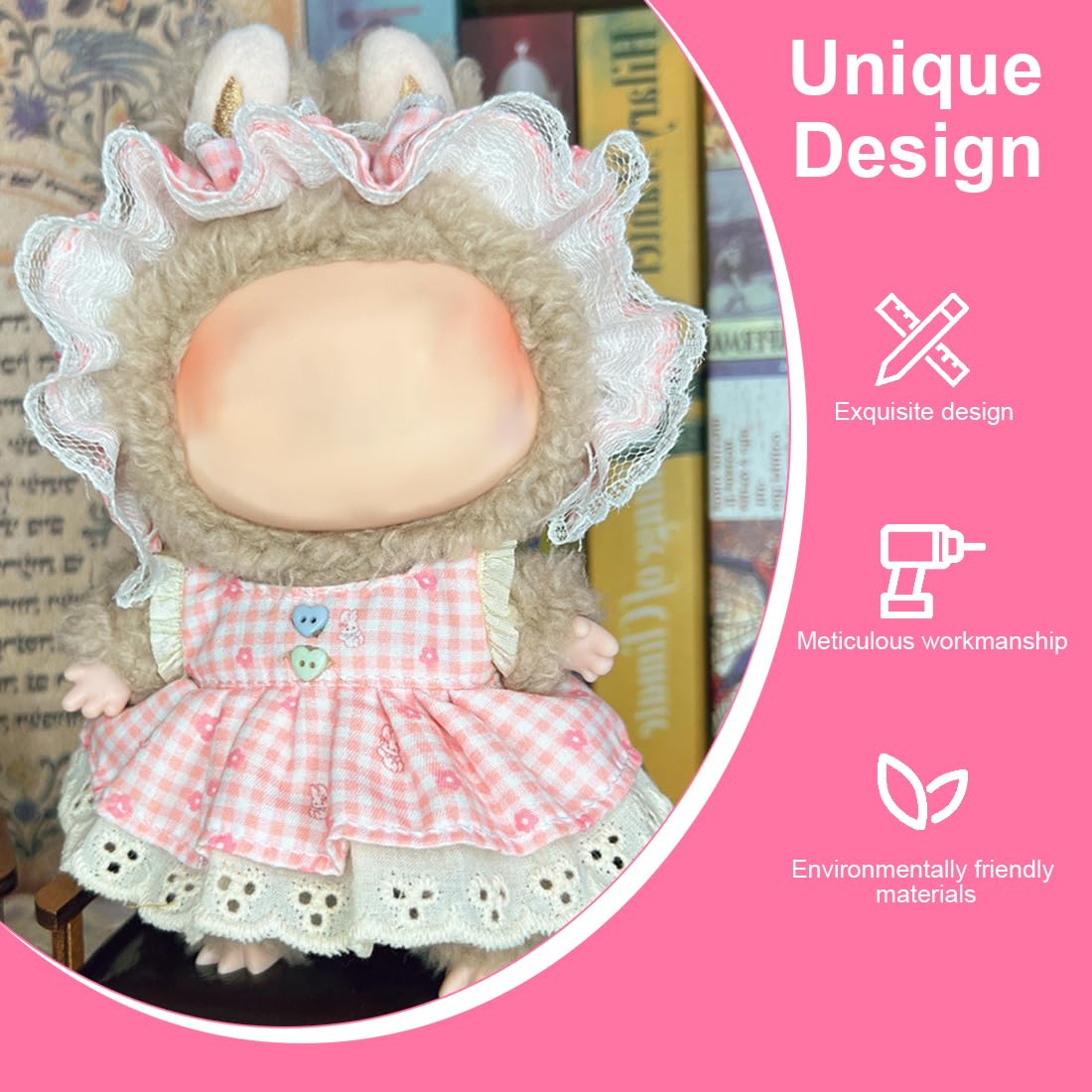 So süß! Dieses 7-teilige Puppenkleidung-Set von AYNKH bringt richtig viel Spaß ins Puppenspiel. Perfekt für 17cm Stoffpuppen oder kleine Plüschtiere - da können die Kleinen ihrer Fantasie freien Lauf lassen. Im Set sind zwei komplette Outfits in pastellgrün mit rosa Akzenten: Strickpullover, Röckchen, Mützen, Blumen-Haarbänder, Trägerkleidchen mit Herzchen und sogar Mini-Umhängetaschen! Alles aus weichen, hautfreundlichen Materialien wie Baumwolle und Strickstoff - sicher und ohne Geruch. Hinten mit praktischem Klettverschluss, super einfach an- und auszuziehen. Die vielen Teile lassen sich toll mixen und kombinieren - heute mal die Mütze zum Kleid, morgen die Tasche zum Pullover. Einfach perfekt für Rollenspiele und um die eigene Kreativität auszuleben. Übrigens: Macht sich auch super als Geschenk zu Geburtstagen, Einschulung oder Weihnachten! (Achtung: Die Puppe ist nicht im Lieferumfang enthalten.) Kleiner Hinweis: Wegen handgemessener Größen kann's mal 0,5cm Abweichung geben, und die Farben können auf verschiedenen Bildschirmen etwas anders wirken.