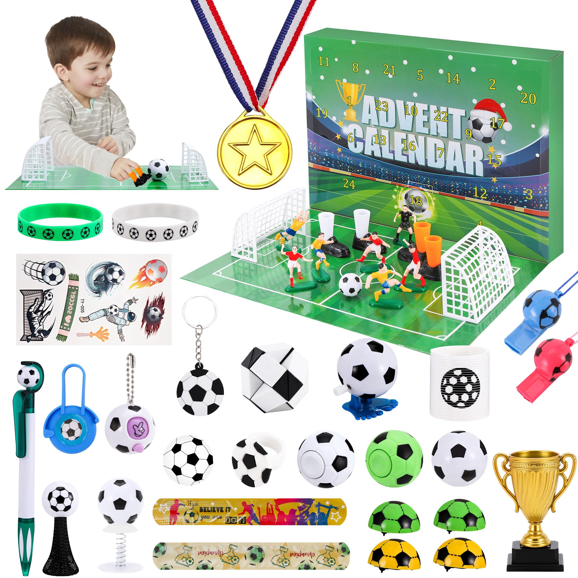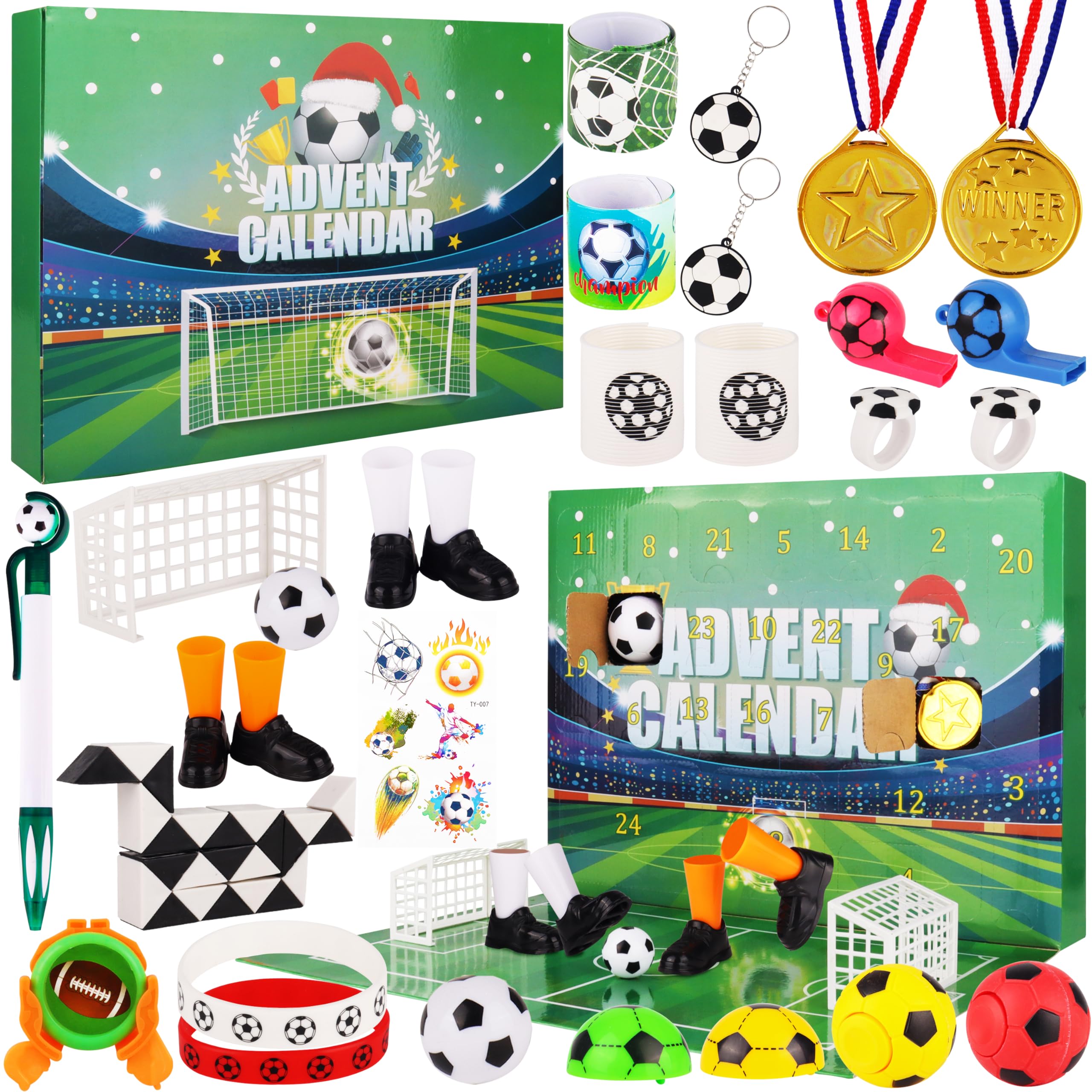 Tor zur Weihnachtszeit! Dieser coole Fußball-Adventskalender bringt 24 Tage lang Spaß für kleine Fußballfans. Hinter jedem Türchen versteckt sich ein tolles Fußball-Spielzeug: Trophäe, Tore, Fußball-Schlüsselanhänger, Spielerfiguren, Armbänder, Ringe, Sticker und vieles mehr! Perfekt für Jungen und Mädchen ab 3 Jahren, die Fußball lieben. Jeden Tag eine neue Überraschung - so wird das Warten auf Weihnachten zum spannenden Erlebnis. Fördert die Kreativität und sorgt für strahlende Kinderaugen. Ideal als Geschenk für die Vorweihnachtszeit oder zum Nikolaus. Die vielfältigen Spielzeuge laden zum fantasievollen Spielen ein und halten die Kleinen stundenlang beschäftigt. Mach deinem kleinen Fußballfan eine riesige Freude und verkürze die Wartezeit auf Weihnachten mit diesem tollen Kalender! Ob für deine eigenen Kinder, Enkel, Nichten oder Neffen - dieser Adventskalender ist der absolute Hit für alle fußballbegeisterten Kids.