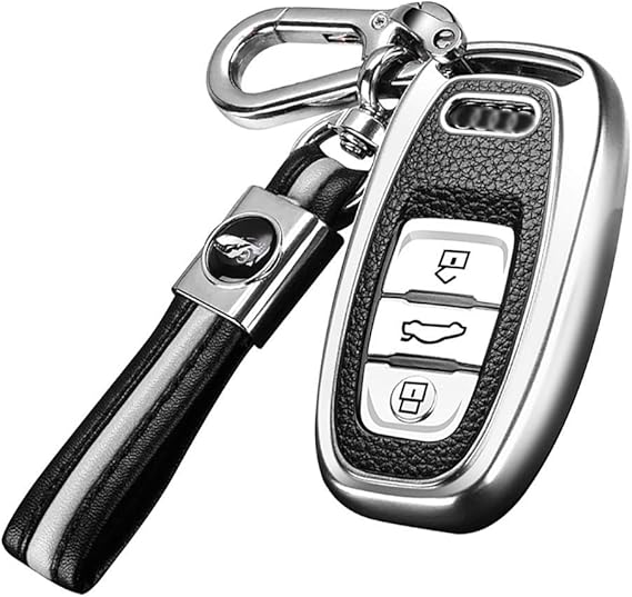 Schütze deinen Audi-Schlüssel mit dieser stylischen Hülle! Die Metall-Schale mit Carbon-Optik ist sturzfest, während die Silikon-Tasten im Dunkeln leuchten. Einfache Montage ohne Kleber. Kompatibel mit vielen Audi-Modellen wie A4, A5, Q5, Q7, TT, und mehr. Inklusive Schlüsselanhänger und Schraubendreher. Mach deinen Schlüssel zum Hingucker!