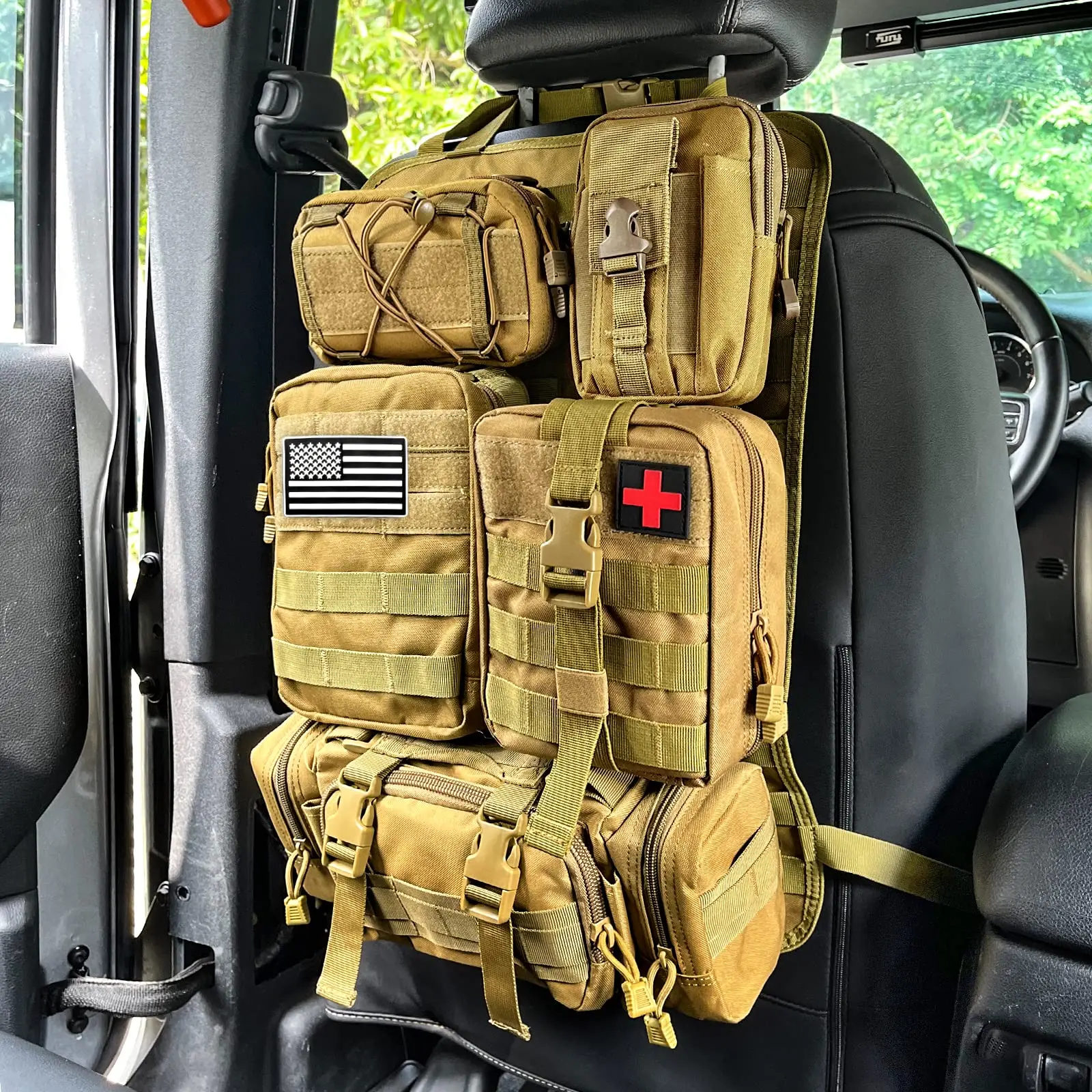 Endlich Ordnung im Auto! Dieses MOLLE Panel von smilfuy verwandelt deine Sonnenblende in einen super praktischen Organizer. Aus robustem ABS-Material - leicht aber extrem stabil! Mit 20,3 x 16,5 cm bietet es Platz für Sonnenbrillen, Taschenlampen, Multitools und alles was du griffbereit haben willst. Die Installation ist simpel: Einfach mit dem langen Klettband an der Kopfstütze befestigen - passt sich jeder Größe an. Die Oberfläche ist mattiert, blendet nicht und die Ecken sind abgerundet. Super für Handwerker, Outdoor-Fans oder einfach jeden, der sein Auto ordentlich halten will! Du kannst taktische Taschen und Werkzeuge direkt dran befestigen - alles sicher und griffbereit. Macht dein Fahrzeug innen viel aufgeräumter! Qualitativ echt überzeugend - verformt sich nicht und die Farbe bleibt. Einfach mal ausprobieren, dann willst du nicht mehr ohne!