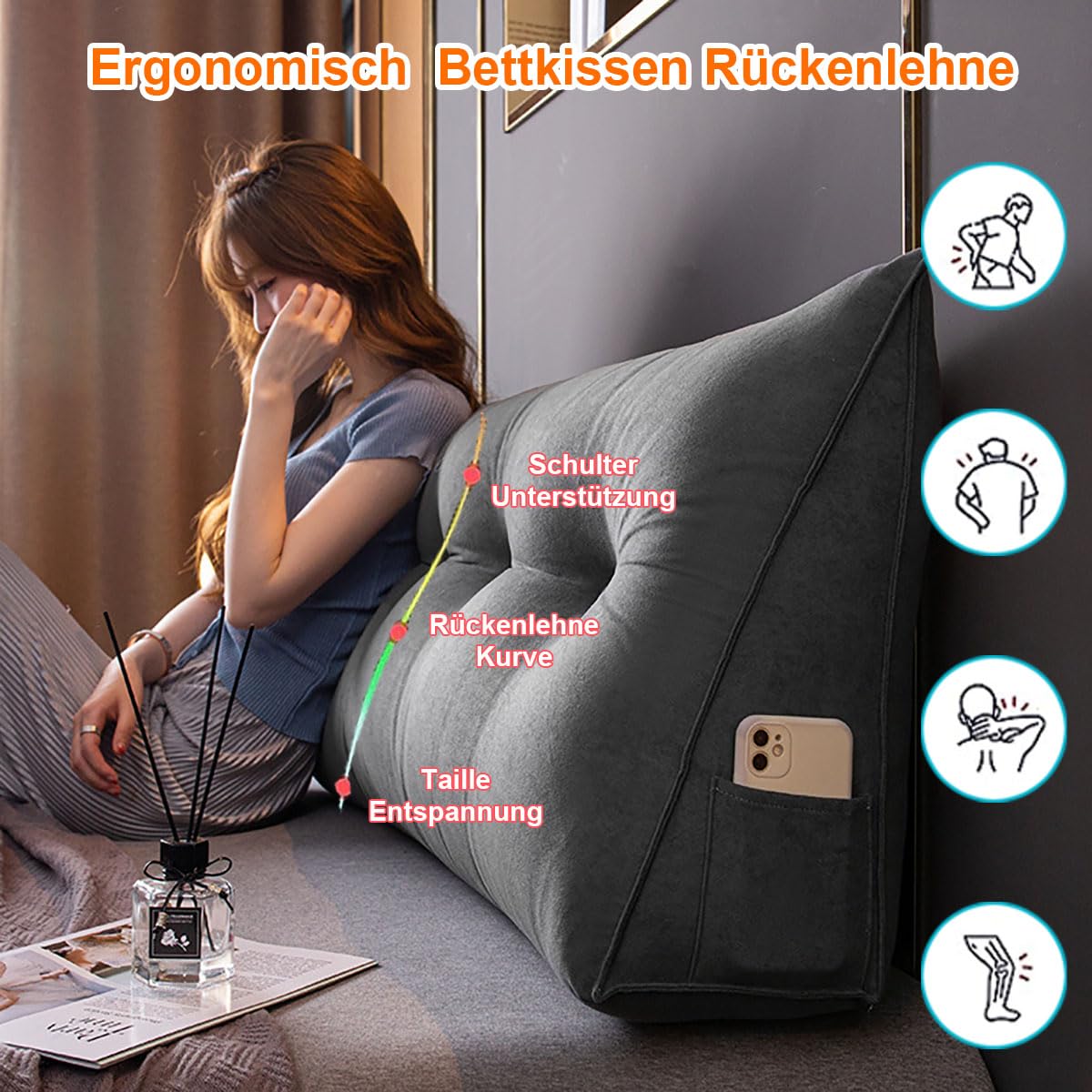 Entspannung pur – dieses Keilkissen sorgt für perfekte Unterstützung im Bett, auf dem Sofa oder sogar im Büro! Mit den Maßen 150x50x20 cm ist es ideal als Rückenlehne, Nackenstütze oder auch als bequeme Unterlage für die Beine. Die ergonomische Form passt sich der natürlichen Wirbelsäulenkrümmung an und entlastet so Rücken und Schultern. Perfekt zum Lesen, Fernsehen, Arbeiten am Laptop oder einfach zum Relaxen. Der abnehmbare Bezug ist waschbar – praktisch und hygienisch. Das Kissen kommt komprimiert an, entfaltet sich aber nach ein paar Stunden in voller Größe. Sieht nicht nur gut aus, sondern ist auch super vielseitig: als Kopfteil, Sofakissen, Rückenstütze oder fürs Homeoffice. Gönn dir und deinem Rücken eine Pause!