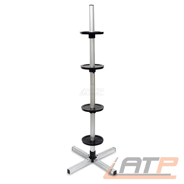 Ordnung im Garage! Dieser praktische Felgenbaum bietet Platz für bis zu 4 Reifen/Felgen. Mit 100kg Tragkraft (25kg pro Fach) und 108cm Höhe. Die Räder machen ihn mobil - einfach zu deinem Auto schieben. Durch Verriegelung der Räder steht er stabil. Aus robustem Stahl und Kunststoff, einfach montiert. Schützt deine Reifen vor Verformung und spart Platz. Perfekt für Saisonreifen oder Felgen-Sammlung. Endlich keine Reifen mehr auf dem Garagenboden!