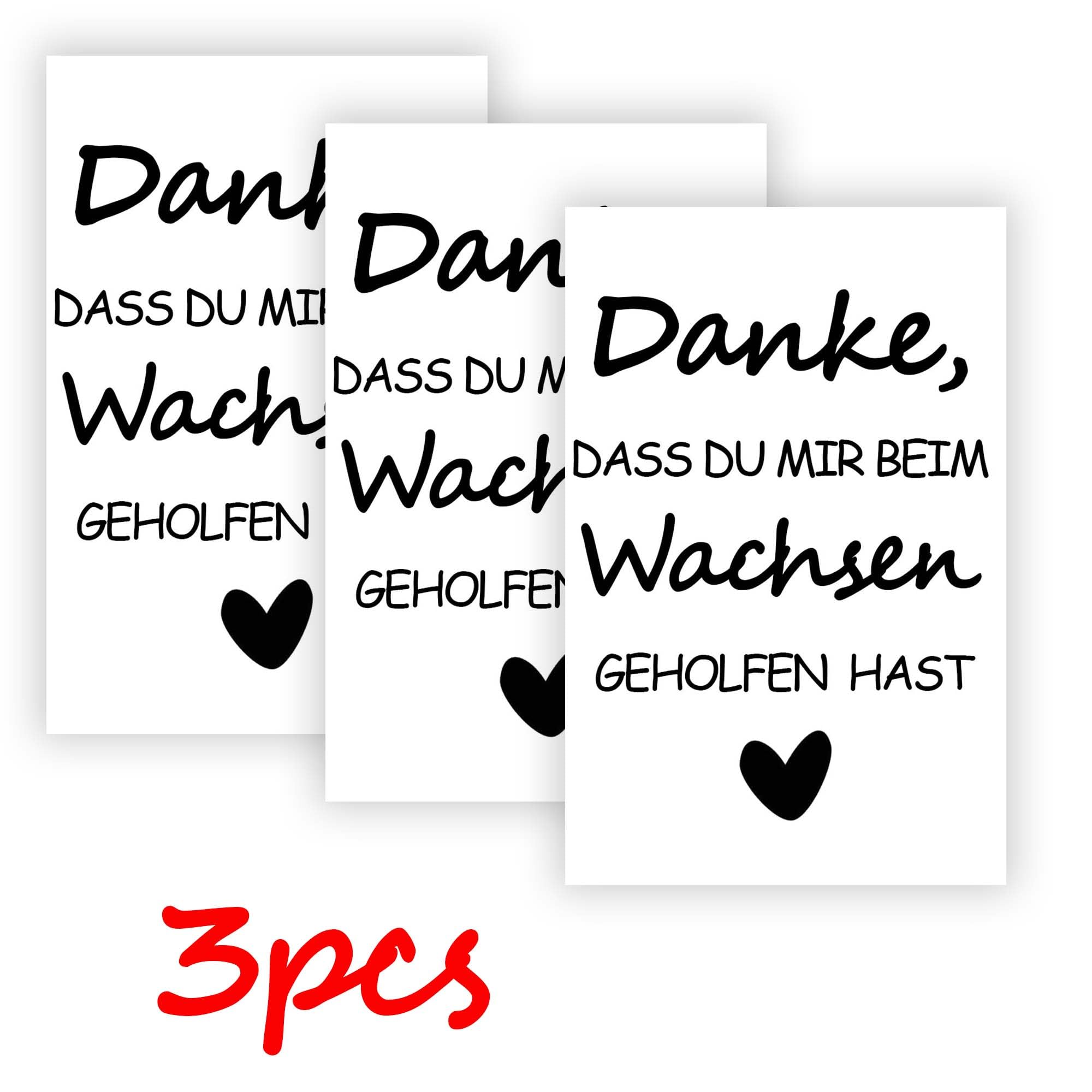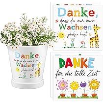 Eine wunderschöne Art Danke zu sagen! Diese 3 Aufkleber mit der Aufschrift 'Danke, dass du mir beim Wachsen geholfen hast' sind perfekt für Erzieher, Lehrer oder Tagesmütter. Einfach auf einen Blumentopf kleben - zusammen mit einer Pflanze wird daraus ein persönliches und bleibendes Geschenk. Jeder Aufkleber misst ca. 10x6,5cm. Mit Transferfolie für einfaches Aufbringen - einfach festdrücken, abziehen und auf die gewünschte Oberfläche kleben. Hält auf Glas, Kunststoff, Holz, Metall oder anderen glatten Oberflächen. Ob zum Abschied aus dem Kindergarten, zum Ende des Schuljahres oder einfach als kleine Aufmerksamkeit - dieses Geschenk kommt immer gut an. Viel schöner als eine normale Karte und die Pflanze erinnert jeden Tag an die Dankbarkeit. Einfach, aber herzlich - so macht Schenken Freude!