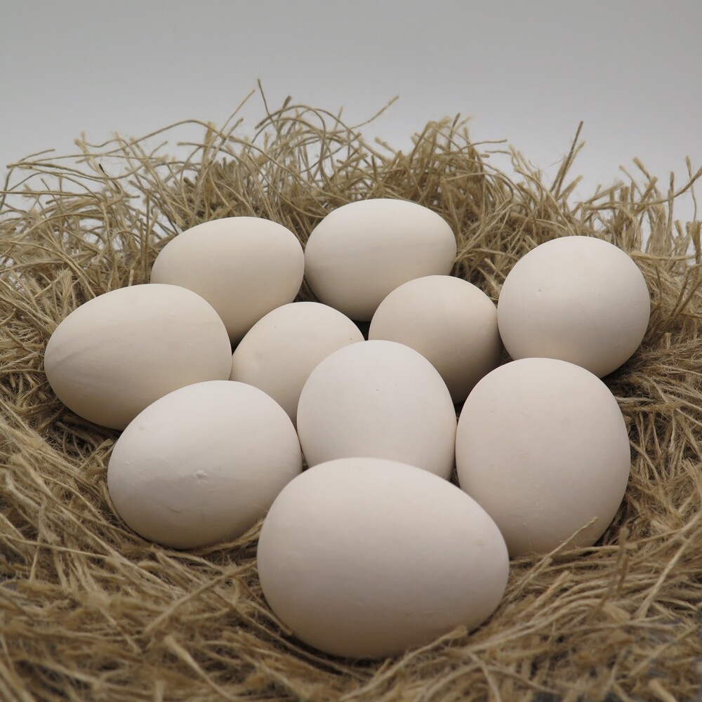 Perfekte Helfer für die Hühnerhaltung! Diese 6 braunen Kunsteier aus Gips zeigen deinen Hennen genau wo sie legen sollen. Jedes Ei misst ca. 54x41 mm und wiegt 35g - fühlt sich fast wie echt an. Super praktisch nach der Winterpause oder bei brutfreudigen Hühnern. Deine Hennen können drauf sitzen bleiben ohne dass Küken schlüpfen. Die glatte Oberfläche lässt sich auch super bemalen - ideal für Osterdekoration oder Bastelprojekte mit Kindern. Einfach ins Nest legen und schon wissen deine Hühner wo's langgeht. Ob für Anfänger oder Profis - diese Kunsteier machen die Geflügelhaltung einfacher. Und wenn mal was kaputt geht - kein Problem, du hast ja 6 Stück!
