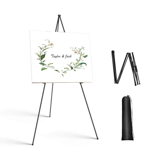Diese vielseitige Staffelei ist der perfekte Präsentationshelfer für deine Hochzeitsschilder, Poster oder Kunstwerke! Aus robustem Metall gefertigt, ist sie super stabil und hält bis zu 5 kg Gewicht. Die Höhe ist von ca. 38 cm bis 168,5 cm verstellbar - perfekt für verschiedene Einsatzzwecke. Die rutschfesten Gummifüße sorgen für sicheren Stand auf jedem Untergrund. Besonders praktisch: Sie lässt sich auf nur 38 cm zusammeklappen und kommt mit einer praktischen Tragetasche - ideal für Transport und Lagerung. Die federbelasteten Anschlüsse machen den Aufbau kinderleicht. Im Lieferumfang sind 20 transparente Federklammern enthalten, die deine Poster und Bilder sicher halten. Perfekt nicht nur für Hochzeiten, sondern auch für Messen, Ausstellungen, Werbung oder einfach zur Dekoration zuhause. Ob für dein 'Herzlich Willkommen'-Schild, Kunstwerke oder Präsentationen - dieser Ständer macht immer eine gute Figur!