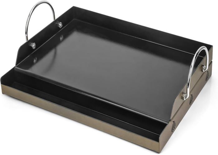 Grill-Profi gesucht? Diese Plancha verwandelt deinen Gasgrill in eine flache Grillplatte - perfekt für alles was brutzeln soll! Aus robustem Eisen mit keramischer Antihaft-Beschichtung - nichts klebt an, reinigen ist ein Kinderspiel. Passt für die meisten 2-Brenner-Grills von Weber, Napoleon, Char-Broil und anderen Marken. Die ausziehbaren Ständer passen sich an verschiedene Grilltiefen an (16-19 Zoll). Mit praktischem Fettablauf und seitlichen Griffen - sicher und einfach zu handhaben. Ob Pancakes, Spiegeleier oder Fleisch - auf dieser Platte wird alles perfekt! Einfach auf den Grill legen und losbrutzeln - mehr Grill-Vielfalt geht kaum!