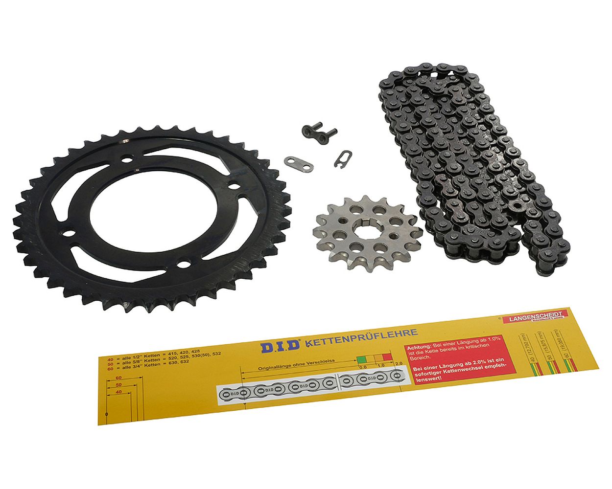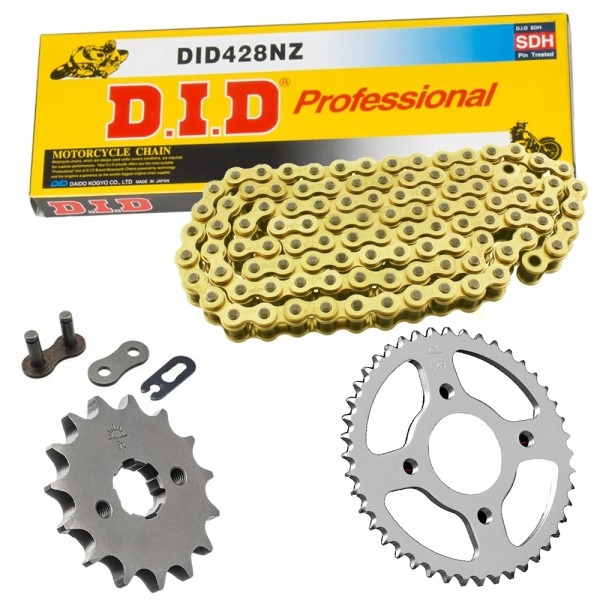 Motorrad-Fans aufgepasst! Dieser komplette Kettensatz ist perfekt für deine Honda CBR 125 R (Baujahr 2011-2017, Typ JC50). Enthalten ist eine hochwertige JT 428HDR Kette mit 128 Gliedern und Clip-Schloss, plus Kettenritzel mit 15 Zähnen und Kettenrad mit 44 Zähnen. Die Zugfestigkeit von 2550kg ist mehr als ausreichend für deine 125er. Die Kettenräder sind aus hochwertigem C45 High Carbon Stahl und das Ritzel aus Chromoly Alloy Stahl CNC-gefertigt - beste Qualität also! Übersetzung 15/44 ist der Standard, aber wenn du was anderes brauchst - einfach fragen, wir machen das kostenlos! Die Kette kommt in Stahlfarbe und ist ohne O-Ring, wird also immer mit Clipschloss geliefert. Einfach einbauen und wieder volle Power auf der Straße genießen!