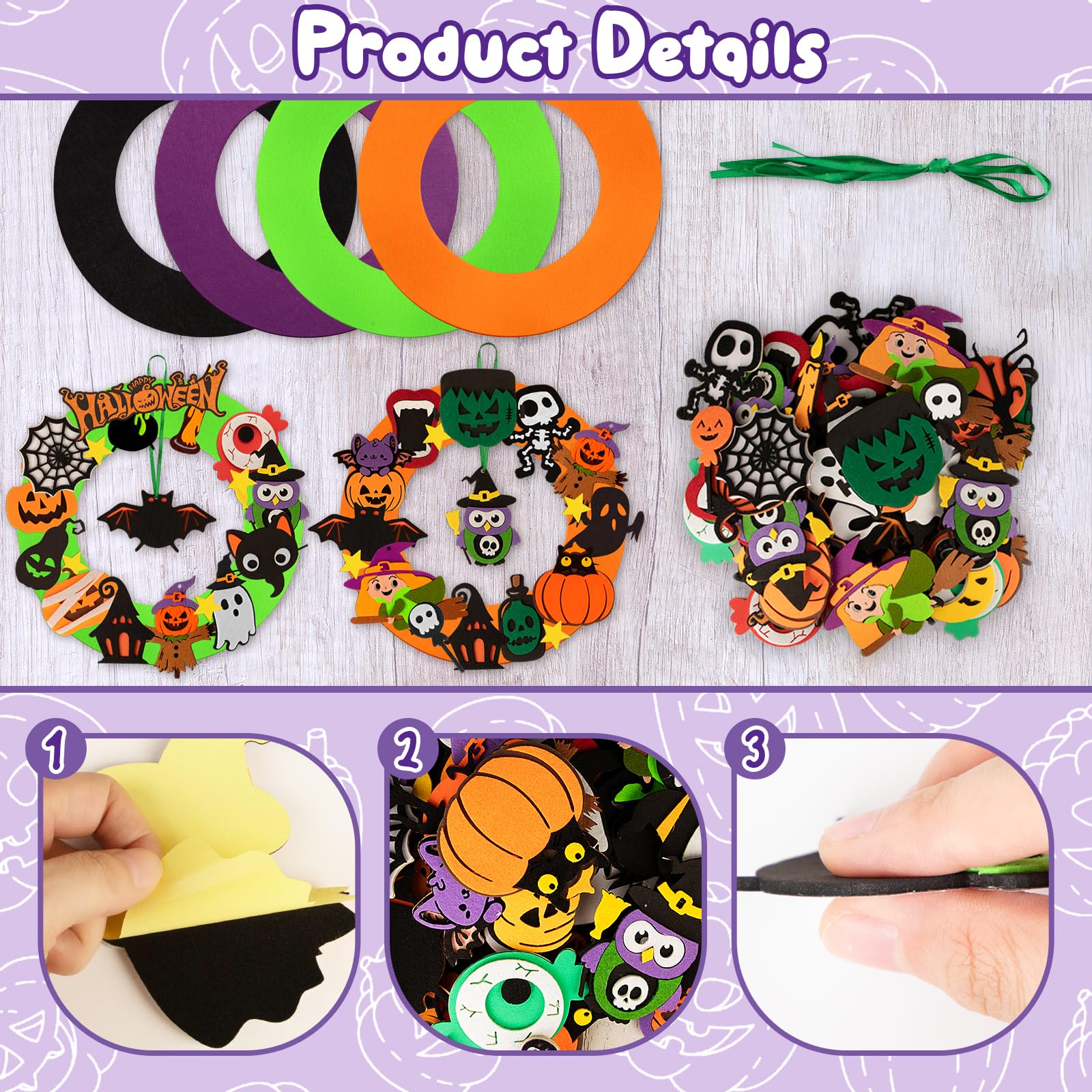 Bereit für gruseligen Bastelspaß? Dieses Halloween-Bastelset von GTJEOI bringt Kinderaugen zum Leuchten! Im Set findest du 8 bunte Kränze in Rot, Schwarz, Weiß und Lila, plus satte 241 Aufkleber mit Geistern, Kürbissen, Fledermäusen und anderen gruseligen Motiven. Das Besondere: Viele Aufkleber glitzern im Licht und sorgen für eine magische Halloween-Atmosphäre! Aus ungiftigem Schaumstoff gefertigt, ist alles super sicher für Kinder. Einfach die Aufkleber abziehen und auf die Kränze kleben - schon entstehen einzigartige Halloween-Dekorationen. Perfekt für Kinderpartys, Klassenzimmer oder gemütliche Bastelnachmittage zu Hause. Mit dem beiliegenden Band kannst du die Kränze auch super aufhängen. Mach dein Zuhause zur gruseligsten Party-Location der Stadt!