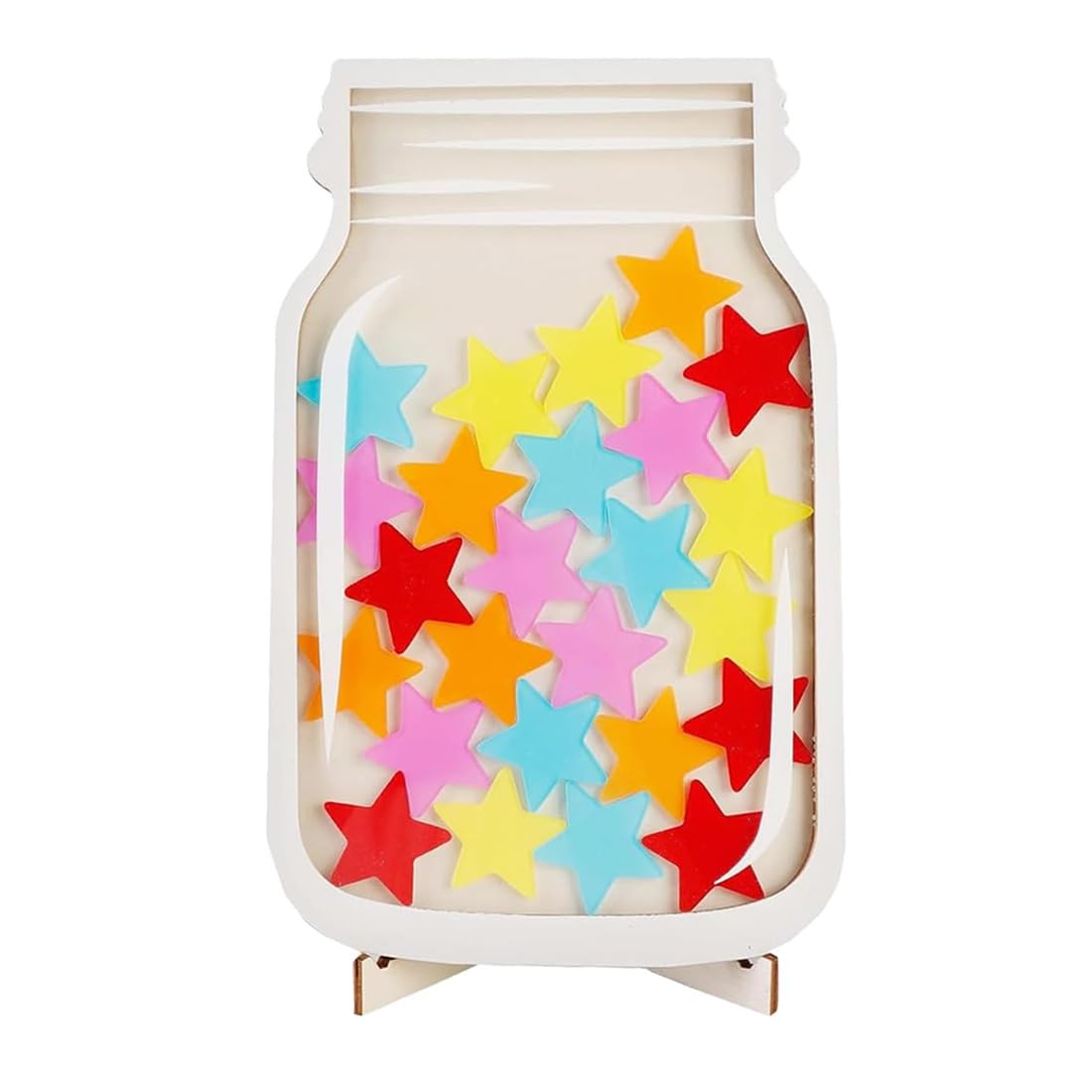 Magnetisches Belohnungsglas Für Kinder - Mit 45 Sternen & Holz-Sternen | Motivationshilfe Für Hausaufgaben & Haushalt