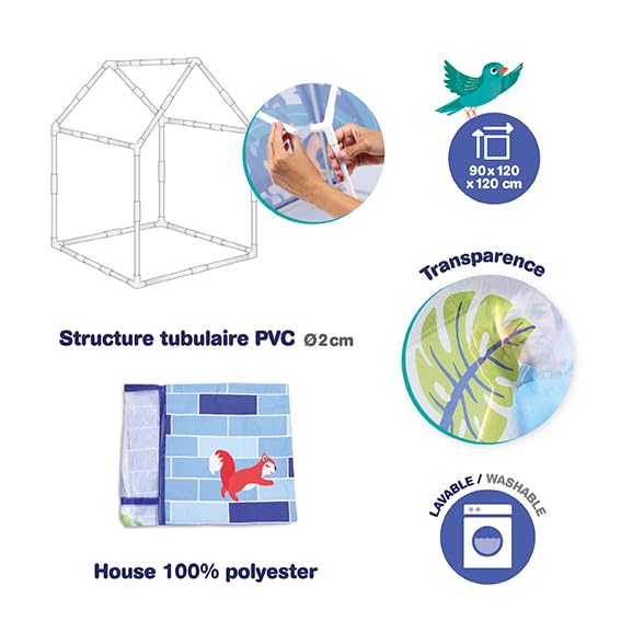 Oh wie süß! Dieses Ludi Spielhaus ist wie ein echtes Zuhause für die Kleinen. Ab 2 Jahren geeignet - da können die Kids spielen wie die Großen. Maße: 90x120x120cm - richtig geräumig für stundenlangen Spielspaß. Mit Tür die sich öffnen lässt, nem Fenster und sogar nem Briefkasten! Die Lüftungsnetze sorgen für frische Luft - nichts schwitzt. Aus 100% Polyester - robust und die Hülle ist in der Maschine waschbar. Super einfach aufzubauen und zusammenzuklappen - nach dem Spielen verstaut es sich hinter der Tür oder unterm Bett. Perfekt für drinnen, aber auch für den Garten geeignet. Ludi ist ne französische Marke mit viel Erfahrung - die wissen was Kinder brauchen. Fördert die Fantasie und gibt den Kleinen ihren eigenen Rückzugsort. Einfach ein Traum für jedes Kind - ob alleine oder mit Freunden!