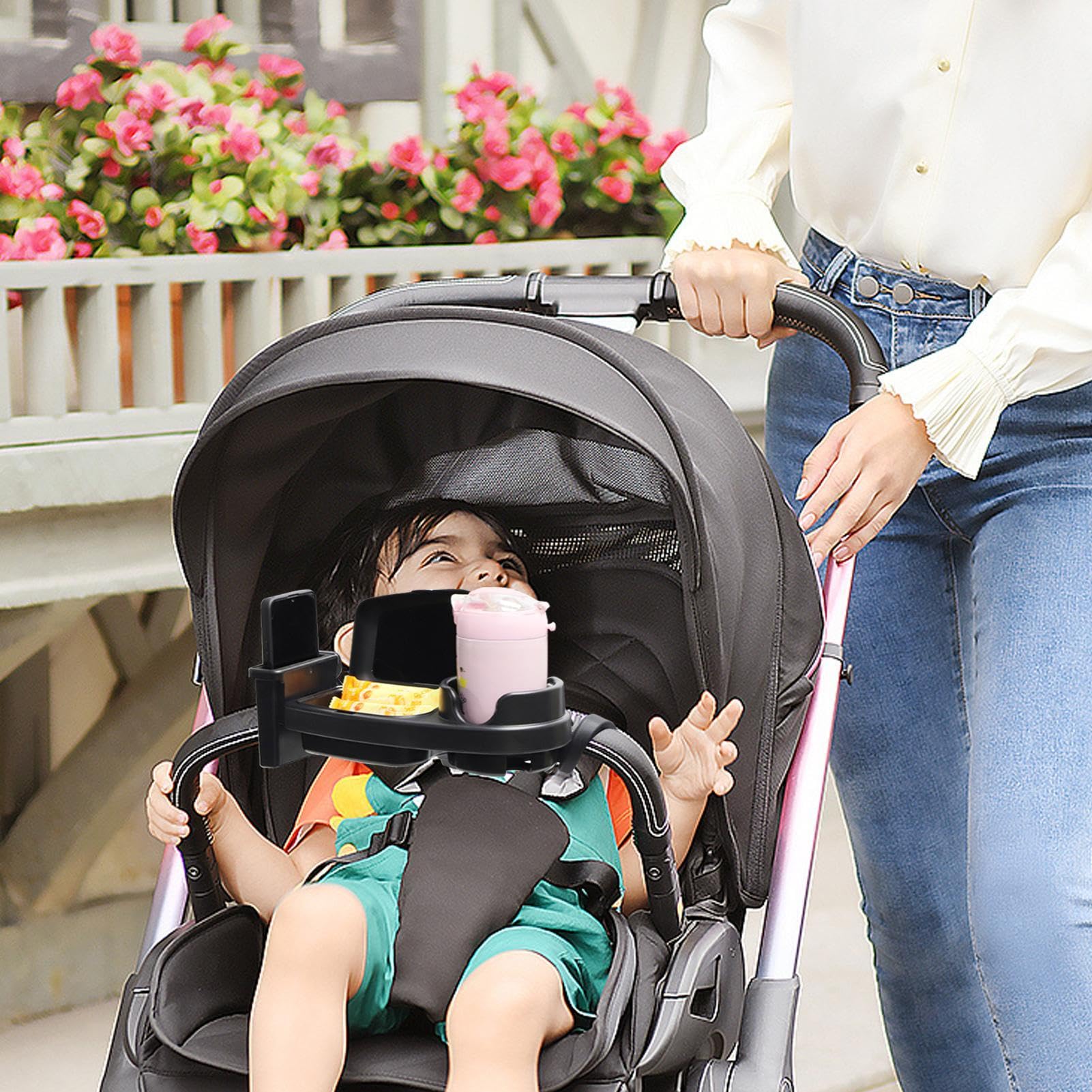 Praktisch für unterwegs mit Kind! Dieses Snack-Tablett für Kinderwagen hält Snacks, Getränke und dein Handy griffbereit. Das doppelte Tablett ist 360° drehbar - immer der perfekte Winkel für dein Kind. Mit horizontaler und vertikaler Handyhalterung für optimalen Blickwinkel. Der Getränkehalter passt für die meisten Flaschen und Becher. Aus ABS und Silikon - leicht zu reinigen, sogar spülmaschinenfest. Passt an Kinderwagen mit Rohrdurchmessern von 25-40mm - also an fast alle Modelle. Einfach anbringen, ohne Werkzeug. So isst dein Kind ordentlich und du hast die Hände frei. Besonders praktisch beim Einkaufen, Spaziergängen oder Reisen. Macht jeden Ausflug entspannter! Die stabile Basis verrutscht nicht, auch nicht bei holprigen Wegen.