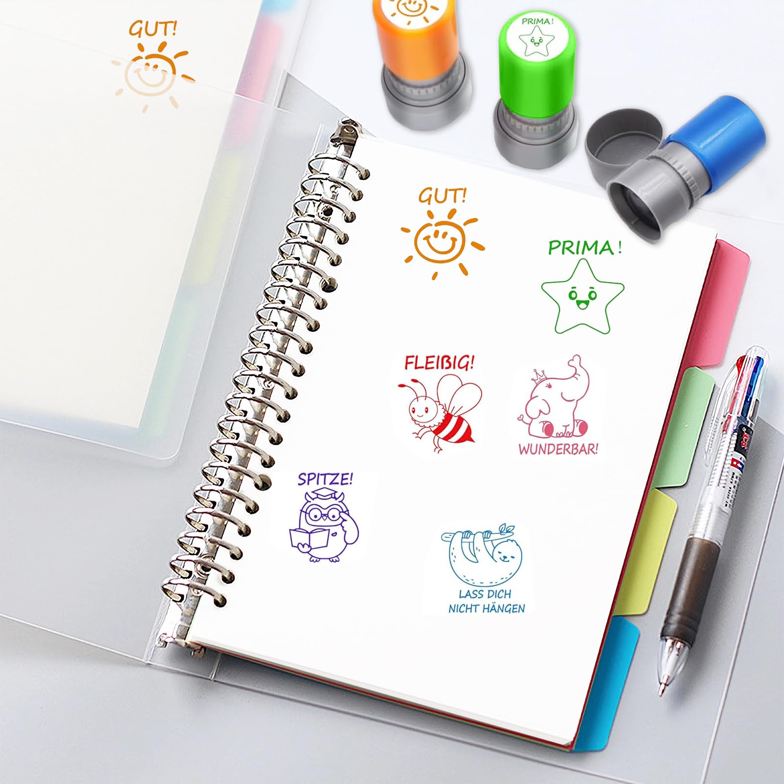 Damit macht Korrigieren richtig Spaß! Dieses 9-teilige Set mit selbstfärbenden Stempeln ist der Hit für jeden Lehrer. Die süßen Motive wie Eule, Biene, Stern und Einhorn bringen Kinderaugen zum Leuchten. Kein lästiges Tintennachfüllen nötig - die Stempel sind schon fertig gefüllt und halten über 1000 Abdrücke aus. Jedes Motiv hat eine coole Aufschrift, die die Kids motiviert und ihnen zeigt, was sie gut gemacht haben. Die Stempel sind aus robustem ABS-Kunststoff und absolut ungiftig, also völlig unbedenklich für den Schulgebrauch. Super praktisch: Mit Deckel, damit die Tinte nicht austrocknet. Die Abdrücke sind immer scharf und klar, ohne zu verschmieren. Perfekt für Hausaufgaben, Tests oder einfach mal als kleines Lob zwischendurch. Auch ein mega Geschenk für Referendare oder Kollegen! Macht aus trockener Korrekturarbeit ein motivierendes Erlebnis für Lehrer und Schüler gleichermaßen.
