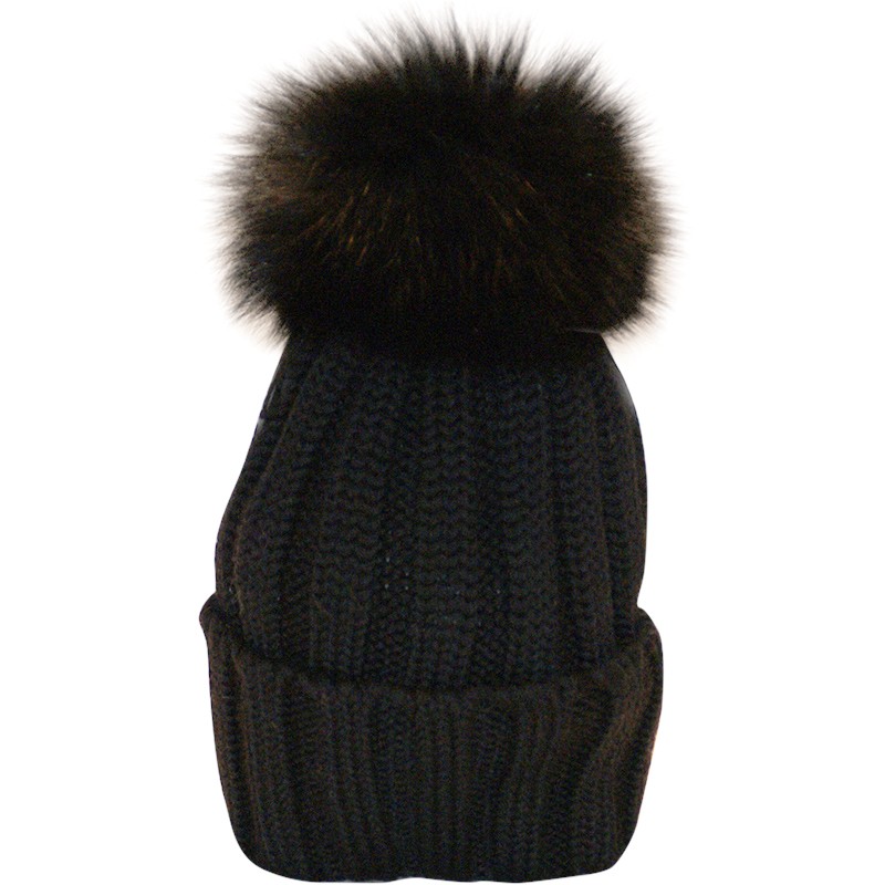Winter Mütze Mit Waschbär Bommel - Warme Pudelmütze Damen Schwarz