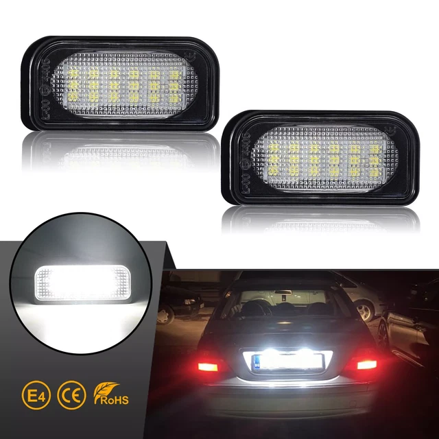 Mach deine Mercedes-Kennzeichenbeleuchtung fit für die Zukunft! Diese LED-Lichter im Doppelpack sind nicht nur super hell, sondern auch komplett wasserdicht. Perfekter Ersatz für deinen C W203, CLK W209 oder SL R230. Einfach einzubauen und sofort steht deinem Auto ein moderneres Aussehen. Die LEDs halten ewig und verbrauchen dabei kaum Strom. Kein Gefummel mehr mit alten Glühbirnen, die ständig kaputt gehen. Das Set besteht aus zwei kompletten Leuchten - alles dabei, was du brauchst. Passt genau und sieht aus wie original, nur besser! Perfect für alle, die ihr Auto aufwerten wollen ohne viel Geld auszugeben.