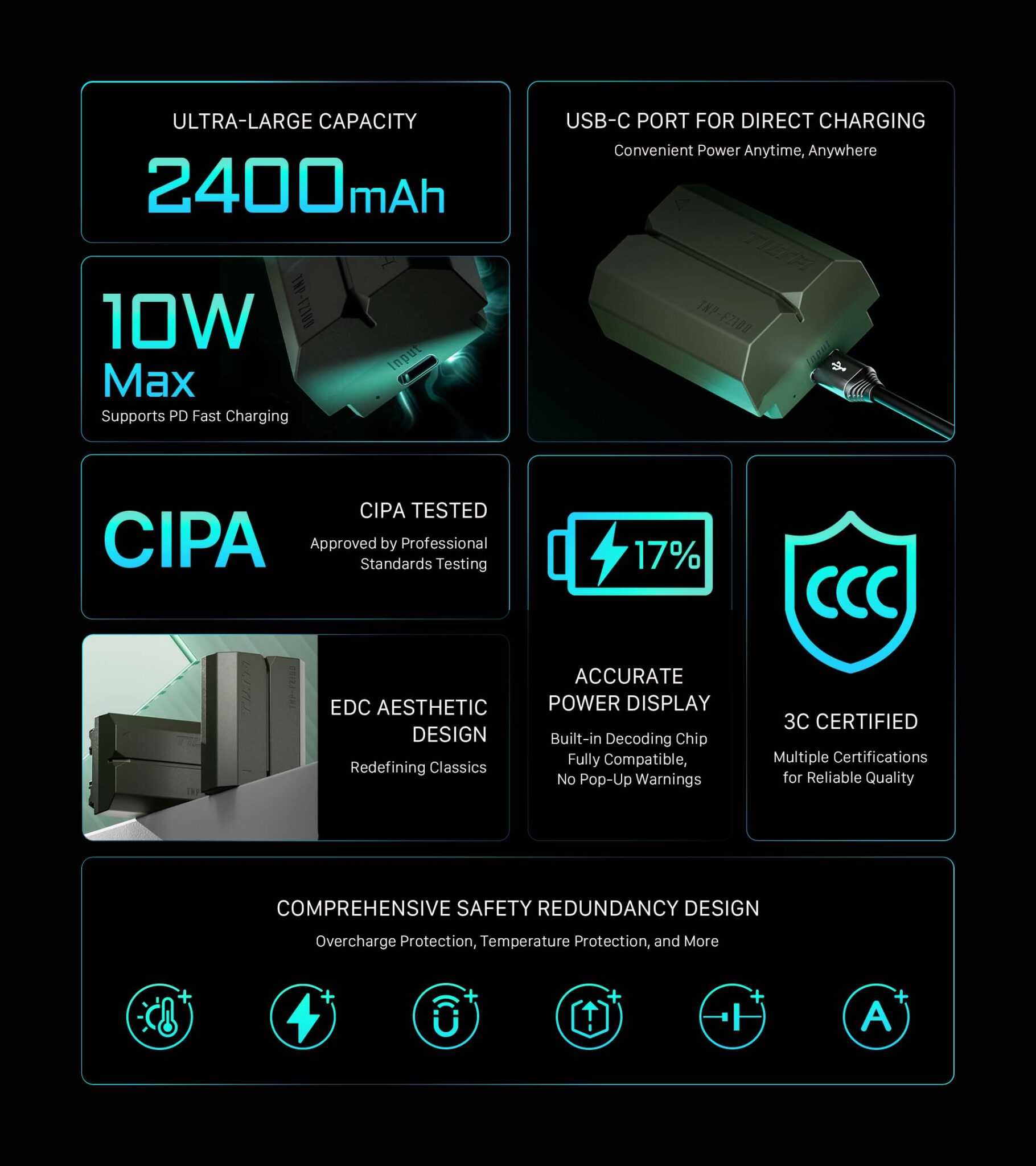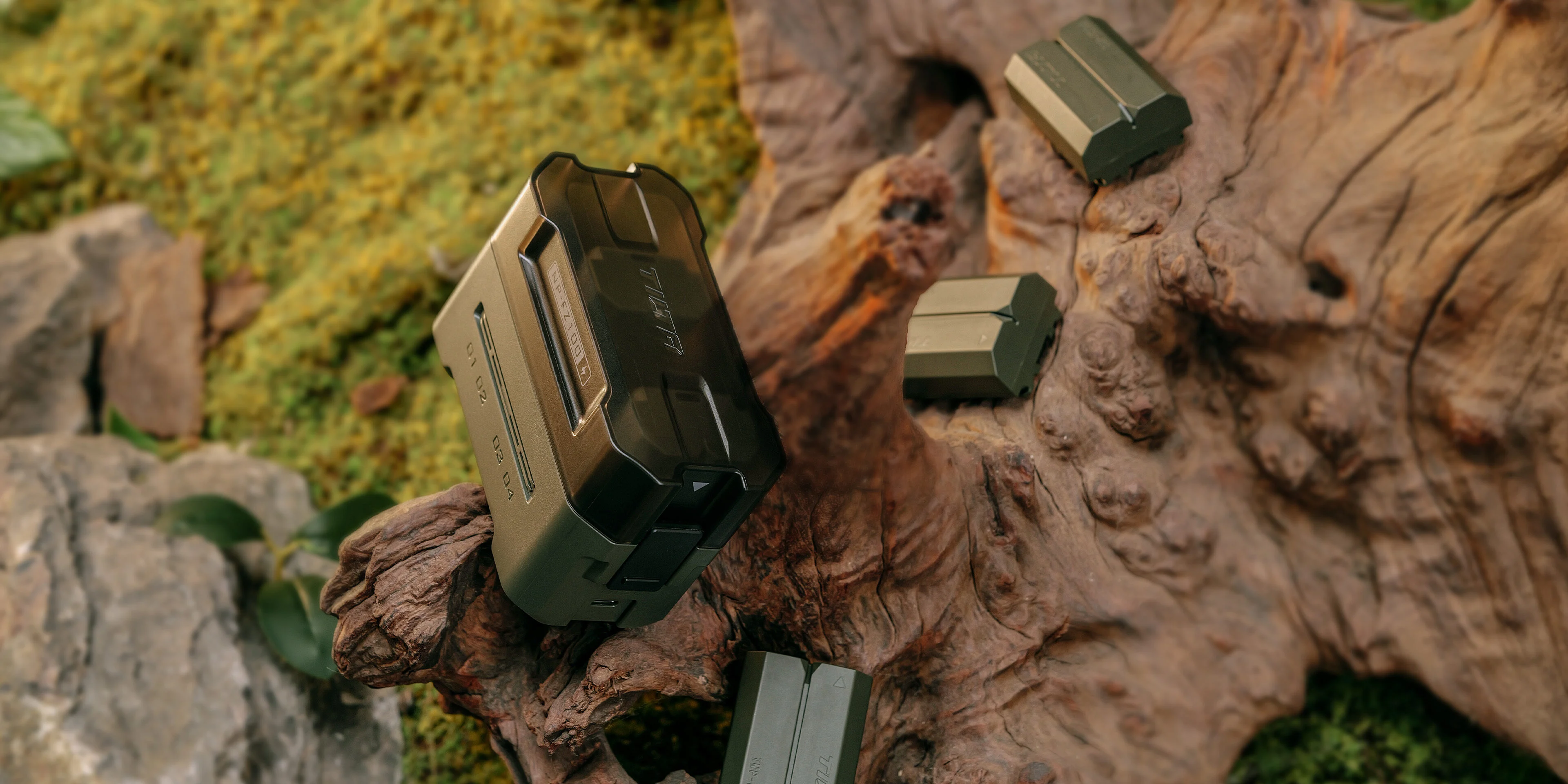 Echtzeit-Ladestatus Anzeigen für jeden Slot. Super leicht mit nur 176g - ideal für unterwegs. Im stylischen EDC-Design in Grün.