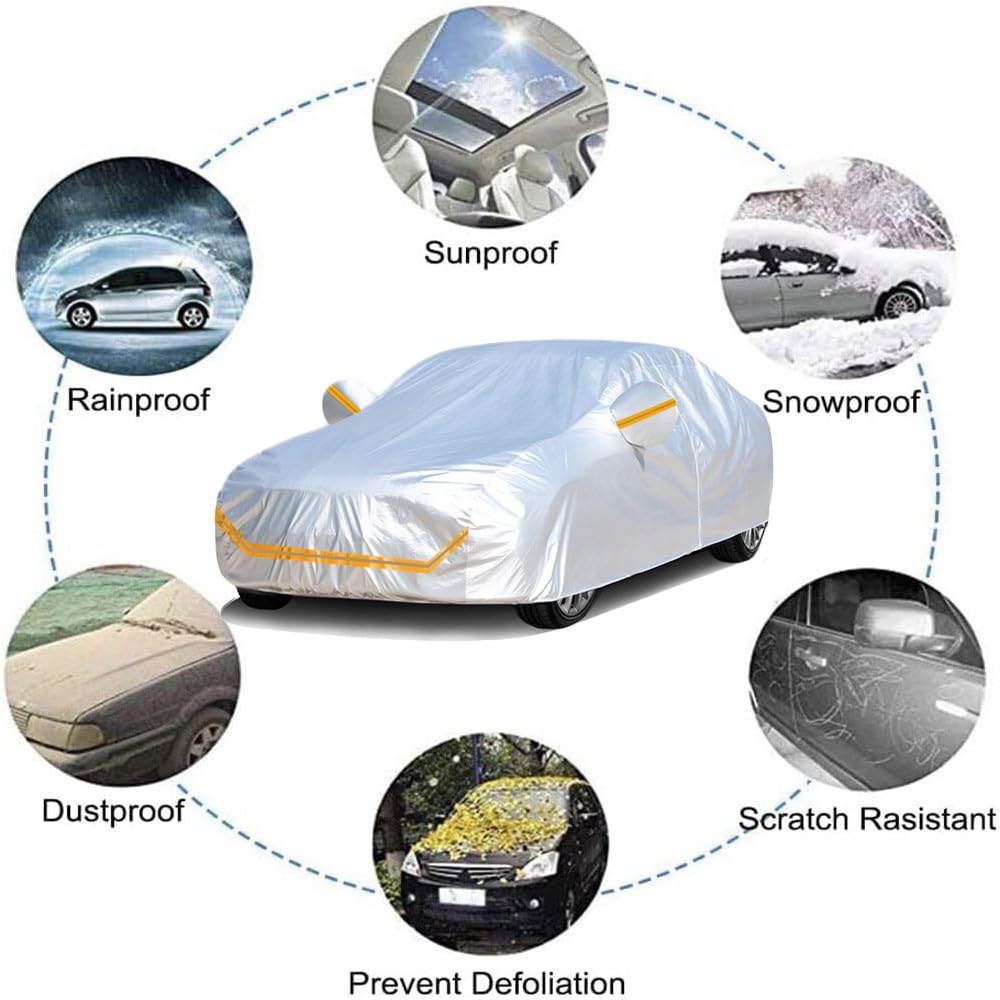 Im Lieferumfang: Abdeckung, Diebstahlsicherung, Aufbewahrungstasche und Fasertuch. Einfach überziehen und dein Auto ist geschützt vor Regen, Schnee, Vogelkot und mehr.