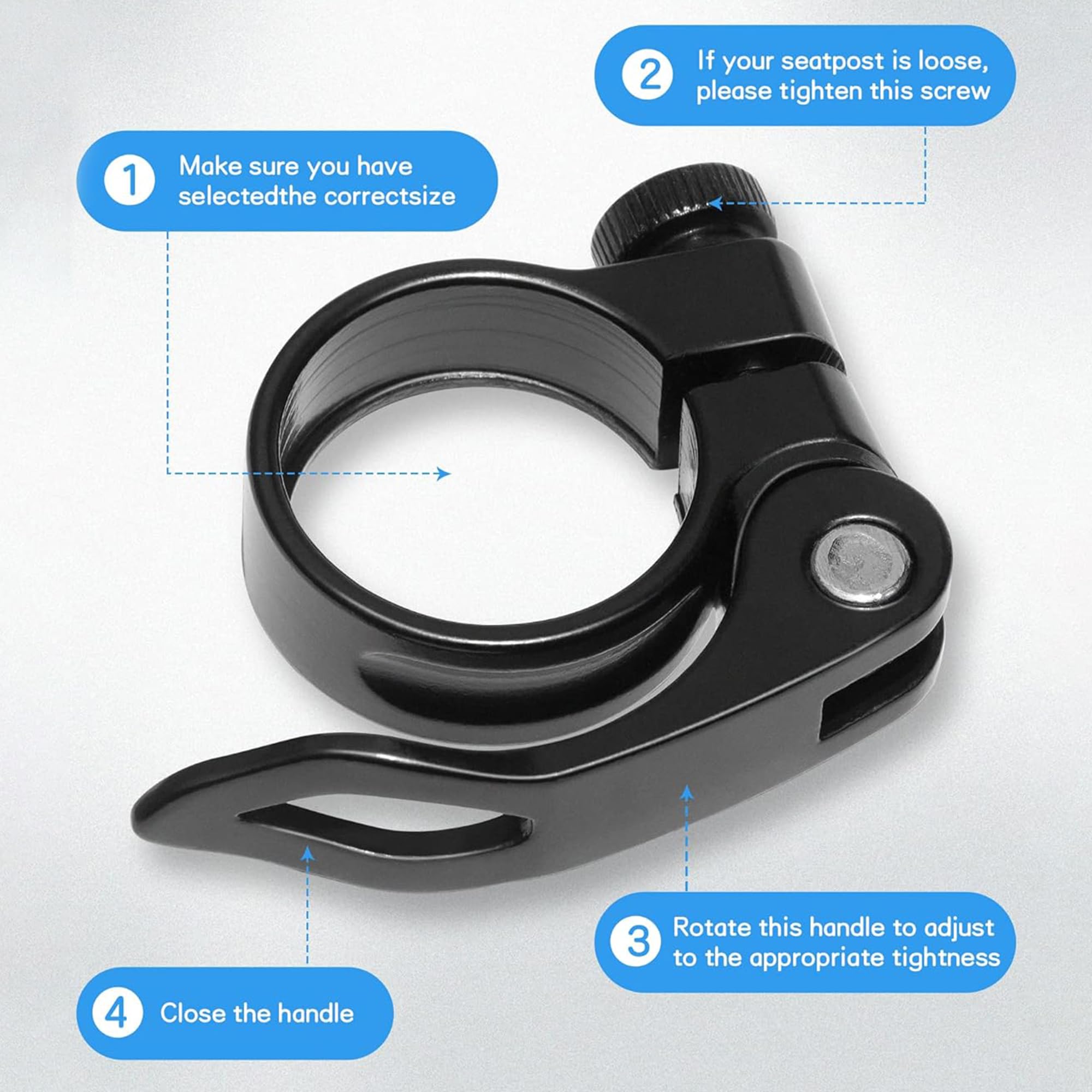 Diese 2 Sattelklemmen aus Aluminium machen die Sattelverstellung zum Kinderspiel! Mit 31.8mm Durchmesser passen sie für die meisten Mountainbikes und Rennräder. Der Schnellspanner ermöglicht schnelles Verstellen oder Wechseln des Sattels - ohne Werkzeug! Die Aluminiumlegierung ist robust, witterungsbeständig und korrosionsfest. Verhindert sicher das Verrutschen oder Wackeln des Sattels während der Fahrt. In schwarzer Farbe sehen sie sportlich aus. Perfekt für alle, die häufig ihre Sattelposition anpassen oder den Sattel transportieren wollen. Einfach montiert und sofort einsatzbereit!