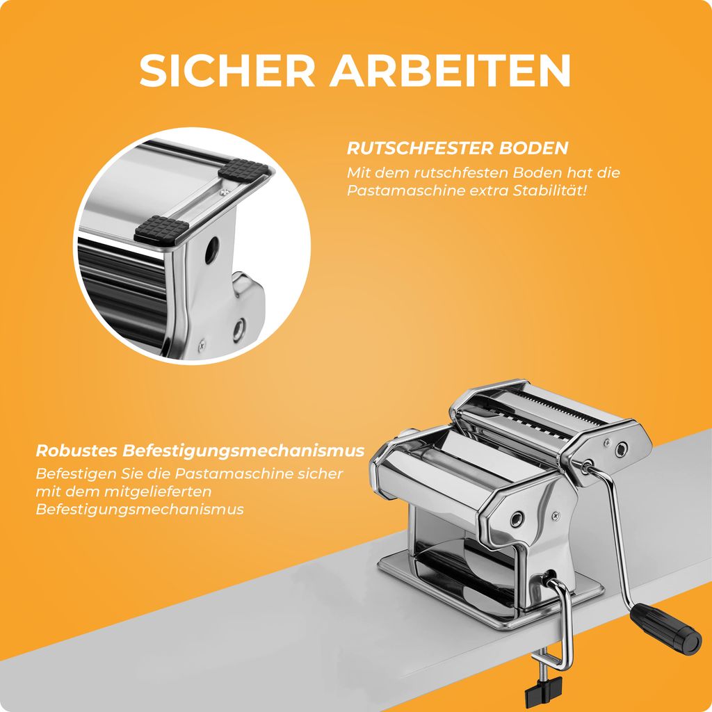 Mama mia - damit machst du die besten hausgemachten Nudeln ever! Diese Baumalu Nudelmaschine aus Edelstahl ist ein Traum für jeden Pasta-Liebhaber. Perfekt für Tagliatelle, Lasagne-Platten oder Spaghetti - deiner Kreativität sind keine Grenzen gesetzt! Aus hochwertigem Edelstahl, der ewig hält und sich leicht reinigen lässt. Mit 21 x 14 x 19,5 cm genau die richtige Größe für die heimische Küche. Im Lieferumfang sind 6 Teile - alles dabei, was du brauchst! Die Serie Inox Pro ist sowohl für Profis als auch Hobbyköche ideal. Funktioniert auf allen Herdtypen, auch Induktion! Einfach den Teig durchdrehen, und schon hast du frische, leckere Pasta, die einfach viel besser schmeckt als gekaufte. Mach deine Küche zur kleinen Pasta-Manufaktur! Einfach ausprobieren - du wirst nie wieder ohne wollen!