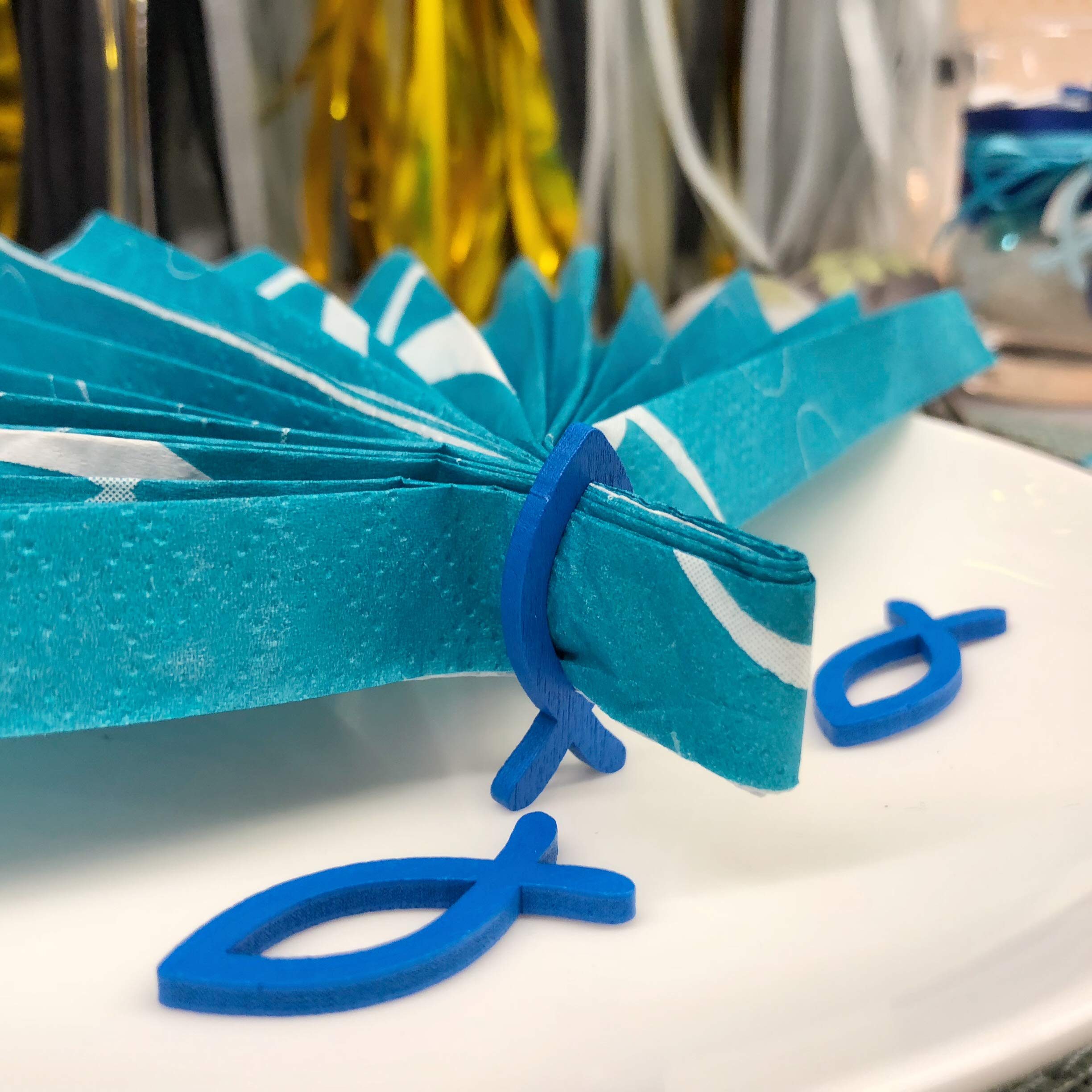 Planst du eine Taufe, Konfirmation oder Erstkommunion? Dieses wunderschöne Dekoset macht deine Feier zu etwas Besonderem! Im Paket sind 8 Windlichter und 45 Holzfische in blau-weißem Design - perfekt abgestimmt für kirchliche Feste. Die Windlichter sind aus hochwertigem ABS-Material und haben tolle Gravuren, die Holzfische sind aus natürlichem Holz und symbolisieren das Christentum. Du kannst die Fische mit Namenskarten bestücken oder einfach als Streudeko auf den Tischen verteilen. Besonders praktisch: Alles ist vielseitig kombinierbar mit Servietten, Tischläufern und anderen Dekoelementen. Ob für den Gabentisch, die Buffet-Deko oder die festlich gedeckten Tische - dieses Set bringt sofort feierliche Stimmung ins Haus. Einfach aufbauen und arrangieren, und schon sieht alles aus wie von einem Profi-Dekorateur!