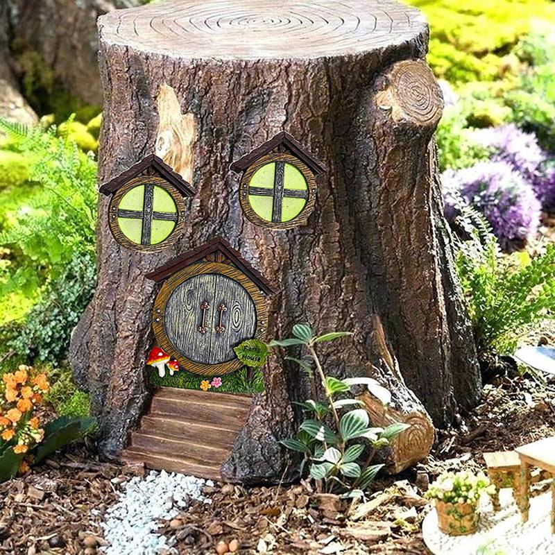Cldaisy Grüne Feentür Aus Holz - Magische Gartendekoration Für Baumstämme