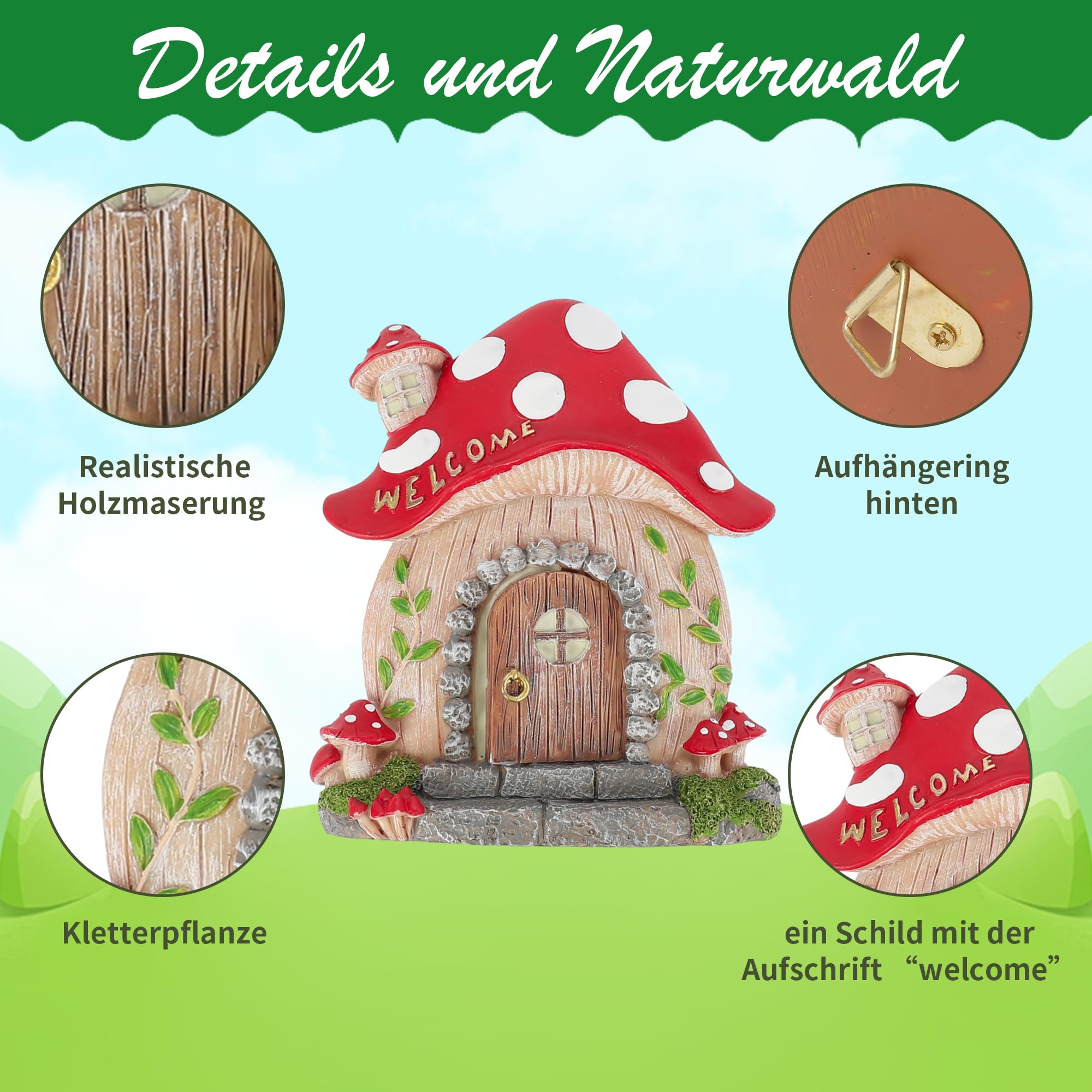 Verwandle deinen Garten in eine märchenhafte Welt mit dieser bezaubernden Feentür aus Holz! Die handgefertigte Tür im skurrilen Design bringt sofort magische Stimmung in deinen Außenbereich. Perfekt für Baumstämme, Gartenwände oder als besonderes Deko-Element. Das witterungsbeständige Holz hält auch bei Regen und Sonne stand und behält lange seine schöne grüne Farbe. Einfach anbringen - schon wohnen die Feen bei dir! Ob als Blickfang zwischen Blumenbeeten oder versteckt unter Sträuchern, diese Miniaturtür weckt die Fantasie von Groß und Klein. Die liebevollen Details und die natürliche Holzoptik machen jedes Garteneck zum Märchenort. Perfekt auch als Geschenk für Gartenliebhaber oder um Kindern eine Freude zu machen. Lass die Magie in deinen Garten einziehen!