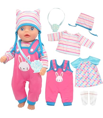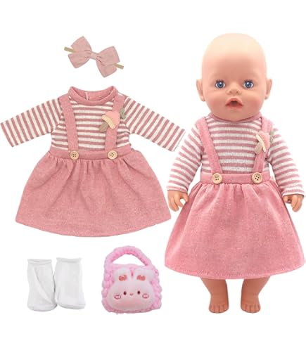Oh je, wie süß ist denn dieses Puppenkleidung-Set! Speziell für Puppen von 35-43 cm (14-17 Zoll) entworfen, bringt es jede Babypuppe zum Strahlen. Das rosa Tüllkleid mit Punkten ist einfach bezaubernd! Dazu gibt's eine herzförmige Sonnenbrille, ein rosarotes Stirnband, eine niedliche Hasen-Umhängetasche und passende Socken - alles, was das Puppenherz begehrt. Aus weichem, kinderfreundlichem Material gefertigt, ist es super angenehm und sicher für kleine Hände. Das An- und Ausziehen klappt leicht und fördert spielerisch die Feinmotorik deines Kindes. Perfekt für Rollenspiele, Modenschauen oder einfach zum Verwöhnen der Lieblingspuppe. Fördert Kreativität und Fantasie - und macht einfach riesig Spaß! Ein wunderbares Geschenk für kleine Puppenmuttis, das garantiert begeistert. Die Accessoires lassen sich auch super mit anderen Puppenkleidungen kombinieren - der Kreativität sind keine Grenzen gesetzt!