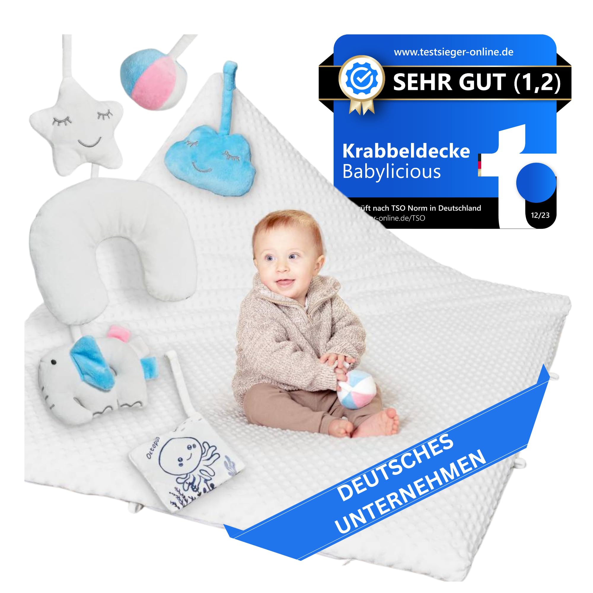 Boah, ist das süß! Dieser Spielbogen mit Krabbeldecke im Natur-Design ist perfekt für dein Baby ab der Geburt. Mit fünf verschiedenen Spielzeugen zum Anfassen, Knisterfolie und nem Spiegel – da gibt’s immer was zu entdecken. Die Decke ist extra weich und hat nen erhöhten Rand, damit dein Kleines sicher liegt. Alles abnehmbar und waschbar, praktisch! Und der Bogen ist schon fertig montiert, musst nix zusammenbauen. Einfach hinlegen und dein Baby freut sich. Ideal für die motorische Entwicklung und macht auch noch super viel Spaß!