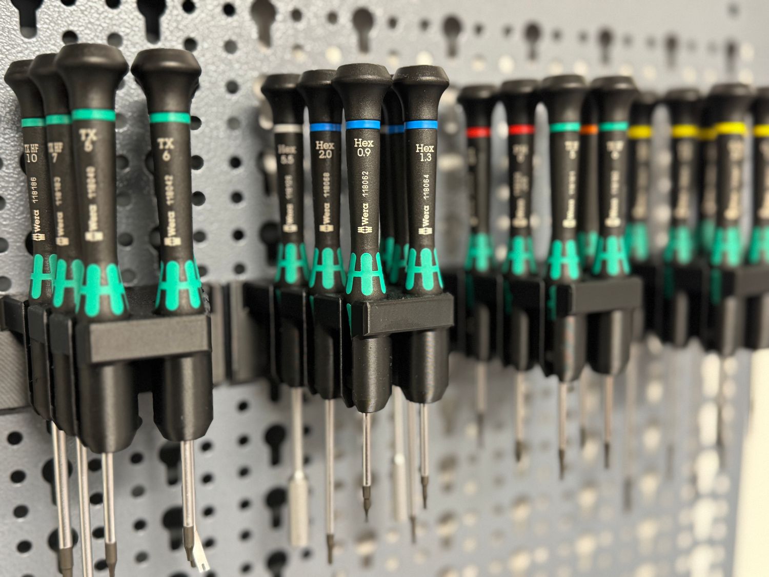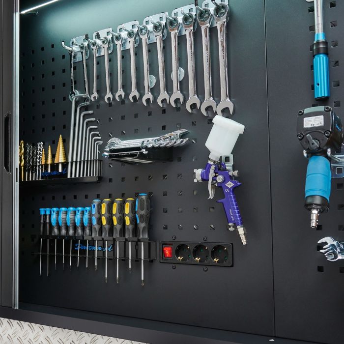 Endlich Ordnung in der Werkstatt! Dieser praktische Schraubendreherhalter von Wolfcraft passt perfekt auf deine Lochwand und bietet Platz für bis zu 8 Schraubendreher. Kompatibel mit der Wolfcraft Lochwand Art. 6085000 und Lochwandschrank Art. 6086000, ist dieser Halter die ideale Lösung für eine aufgeräumte Werkstatt. Einfach an der Lochwand befestigen und schon haben alle Schraubendreher ihren festen Platz - kein lästiges Suchen mehr! Die Schraubendreher stecken sicher in den Halterungen und sind immer griffbereit, wenn du sie brauchst. Perfekt für Hobby-Heimwerker und professionelle Handwerker, die Wert auf Ordnung und Effizienz legen. Mit diesem Halter sparst du nicht nur Zeit, sondern schonst auch deine Werkzeuge, da sie geschützt aufbewahrt werden. Einfach montieren und sich über eine besser organisierte Werkstatt freuen!