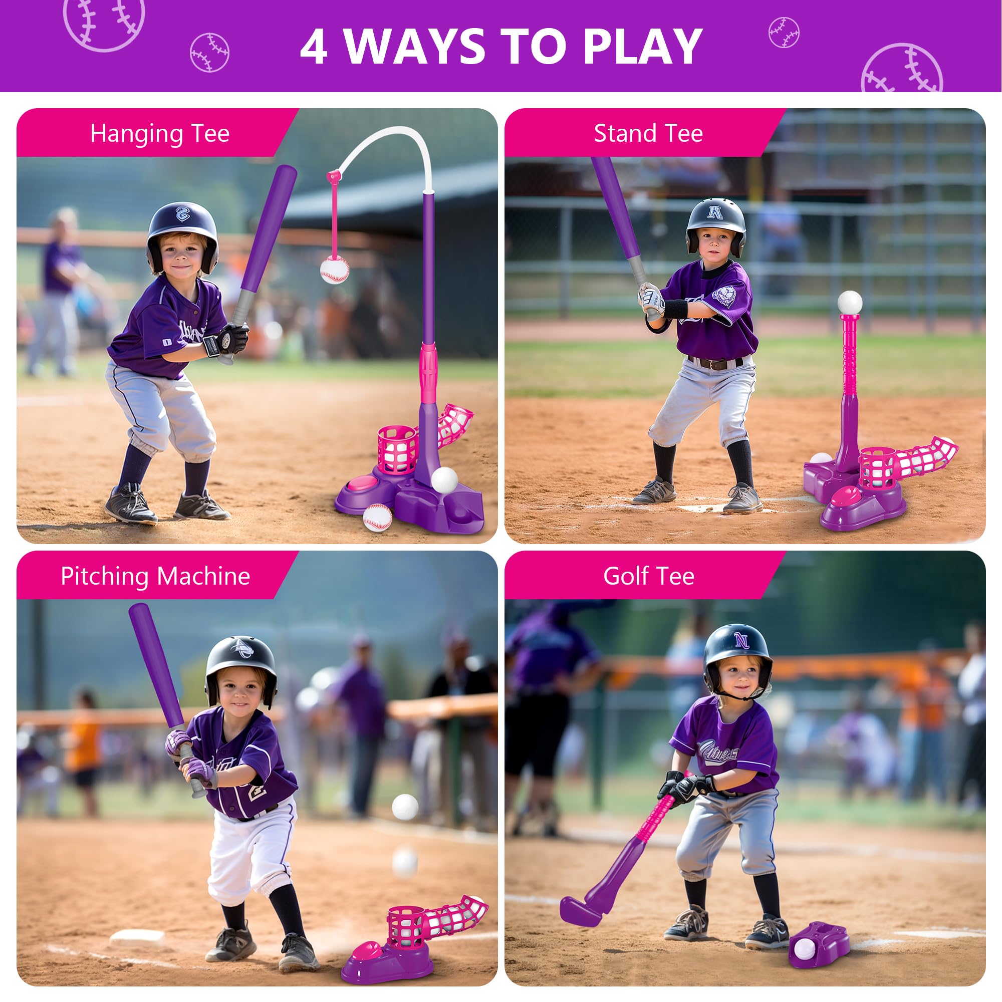 4-in-1 Funktionalität: Teeball, Pitching Machine und mehr. Fördert Hand-Auge-Koordination und motorische Fähigkeiten.