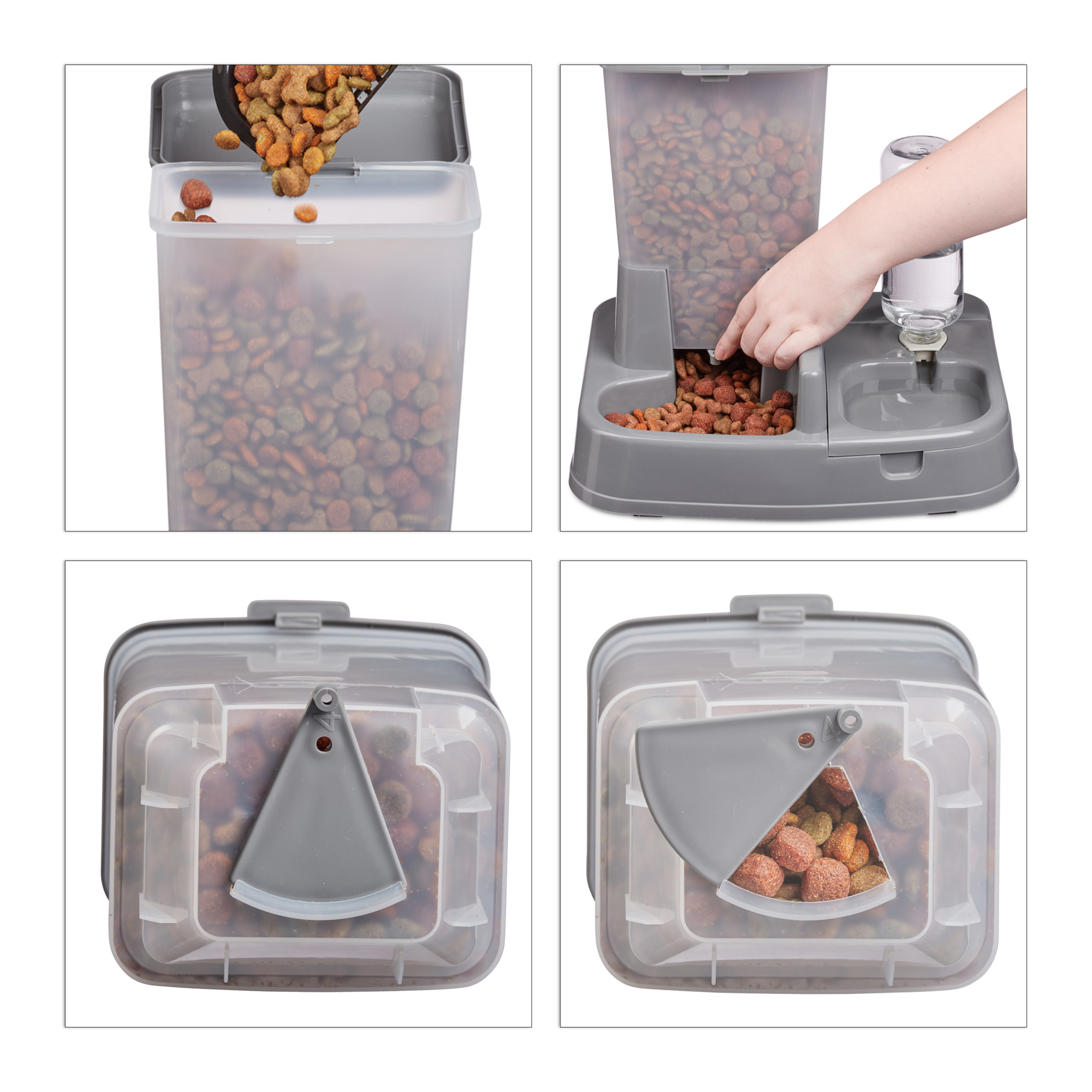 Urlaub geplant? Der Gralara Futterspender sorgt dafür, dass dein Haustier versorgt ist! Der 2-in-1 Automatik-Spender hat Platz für 2,8 Liter Trockenfutter und 1 Liter Wasser. Das Futter rieselt automatisch nach - dein Tier hat immer frisches Futter zur Verfügung. Aus robustem PP-Material, transparent für einfaches Nachfüllen. Rutschfester Boden und abnehmbare Teile für leichte Reinigung. Maße: 31,5x25x23cm. Ideal für Katzen, Hunde, Kaninchen und andere Kleintiere. So kannst du beruhigt weggehen, weißt dass dein Liebling gut versorgt ist. Einfach befüllen und der Spender erledigt den Rest!