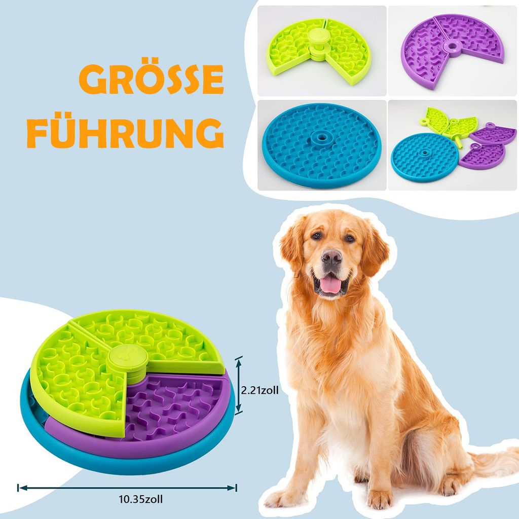 Schluss mit Schlingen! Dieser spiralförmige Slow Feeder verlängert die Fütterungszeit deines Hundes und fördert so eine gesündere Verdauung. Mit 36 starken Oktopus-Saugnäpfen haftet er sicher an den meisten Hundenäpfen aus Glas, Kunststoff, Keramik oder Edelstahl - ganz ohne Wasser. Aus weichem, flexiblem Silikon in Lebensmittelqualität, geeignet für trockenes und nasses Futter. Die 6 konischen Griffe machen das Entfernen und Reinigen super einfach. Besonders geeignet für große Hunderassen die dazu neigen ihr Futter zu verschlingen. Verhindert Blähungen und Überfressen durch langsamere Nahrungsaufnahme. Macht jede Mahlzeit zu einem unterhaltsamen Erlebnis für deinen Vierbeiner! Einfach in den Napf legen, Futter darauf geben - und dein Hund muss sich sein Futter erspielen!