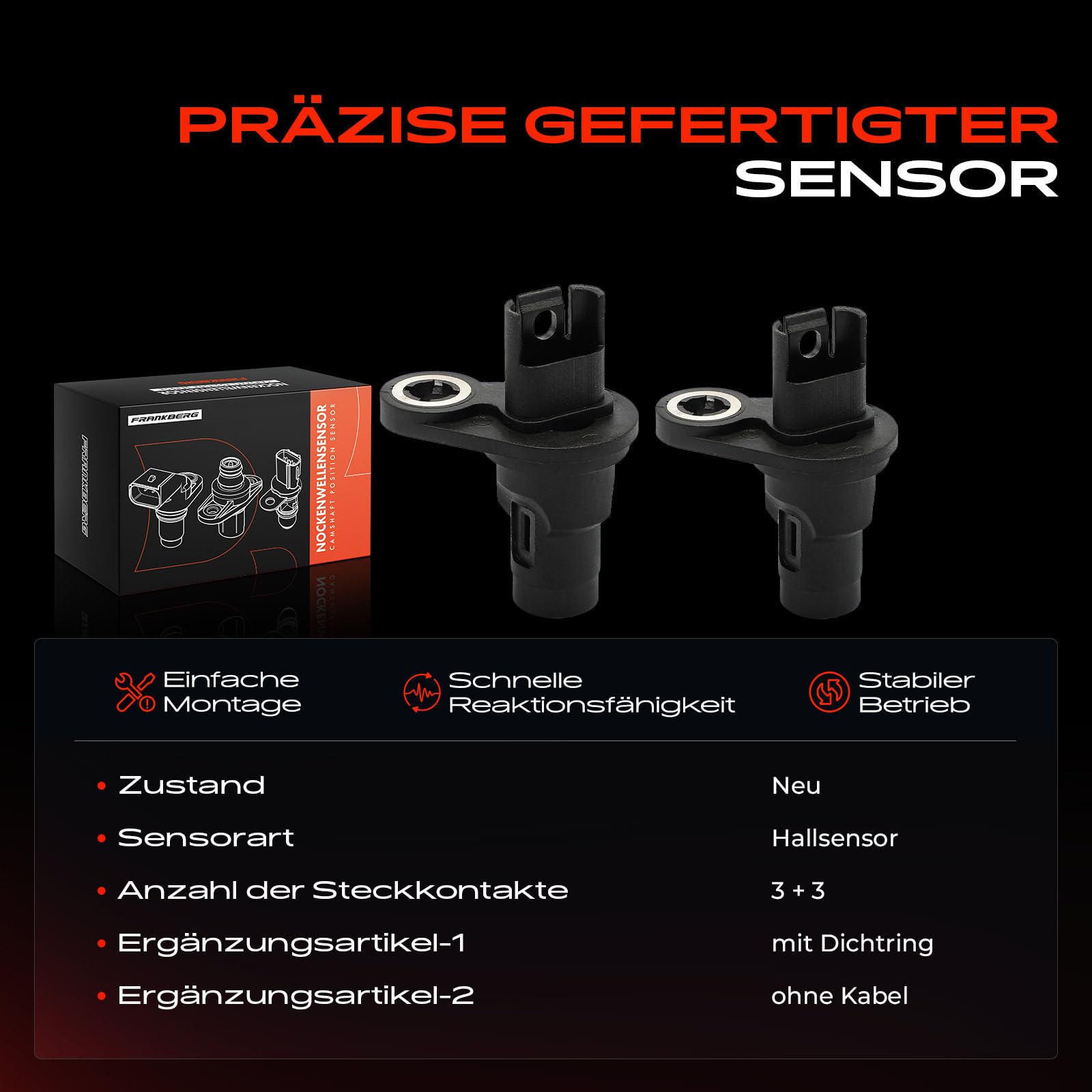 Originalgetreuer Ersatz für dein BMW oder Mini! Dieser Nockenwellensensor passt für zahlreiche Modelle von 2004 bis heute. 3-polige Ausführung für die Einlassseite, speziell für Diesel-Motoren. Inklusive Kabel und Dichtring für einfachen Einbau. Kompatibel mit 1er, 2er, 3er, 4er, 5er, 6er, 7er, X1-X6 und Mini-Modellen. Referenznummern: 13627803093, 7803093. Immer Kompatibilität mit deinem spezifischen Modell prüfen! Pol-Anzahl: 3 | Einbauposition: Einlassseite | Kraftstoff: Diesel | Inklusive: Kabel, Dichtring
