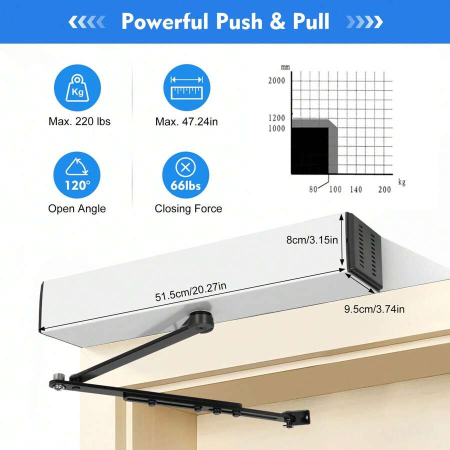 Willkommen im Zeitalter der automatischen Türen! Dieser elektrische Türantrieb macht das Öffnen und Schließen von Türen zum Kinderspiel. Mit mehreren Öffnungsmethoden - per Fernbedienung, kabellosem Handsender oder Tastatur - bist du maximal flexibel. Der Antrieb bietet einen einstellbaren Öffnungswinkel bis 110° und eine Tragfähigkeit von bis zu 150kg, sodass er auch schwere Türen problemlos bewegt. Besonders sicher: Er stoppt sofort, wenn er auf ein Hindernis trifft, und verfügt über Überstromschutz. Einfach zu installieren und für Holz-, Metall- und Glastüren geeignet. Perfekt für Hotels, Büros, Altenheime, Einkaufszentren und auch für Privathaushalte. Die Öffnungs- und Schließgeschwindigkeit sowie die Anhaltezeit sind individuell einstellbar. Mit 24V DC Betriebsspannung und IP21 Schutzart für sicheren Betrieb. Ein echter Komfortgewinn für jeden Eingangsbereich!