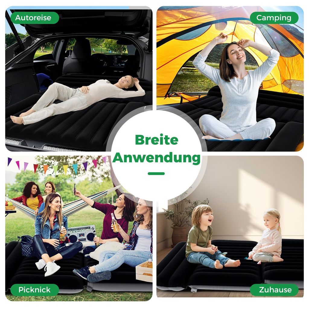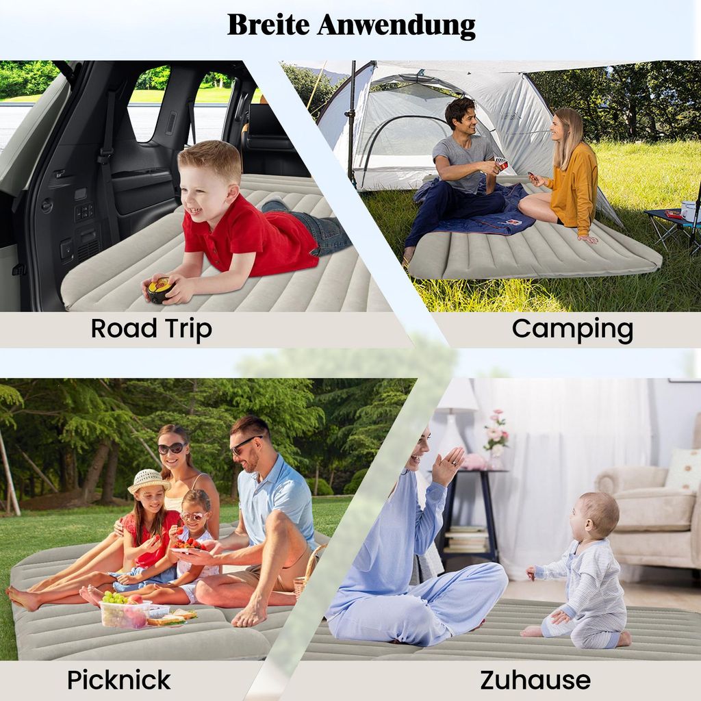 Endlich bequem im Auto schlafen! Diese coole Luftmatratze von COSTWAY verwandelt deinen Kofferraum im Handumdrehen in eine gemütliche Schlafstätte. Mit 190x130 cm Größe und 15 cm Dicke ist sie perfekt für SUVs, Wohnmobile und Vans.