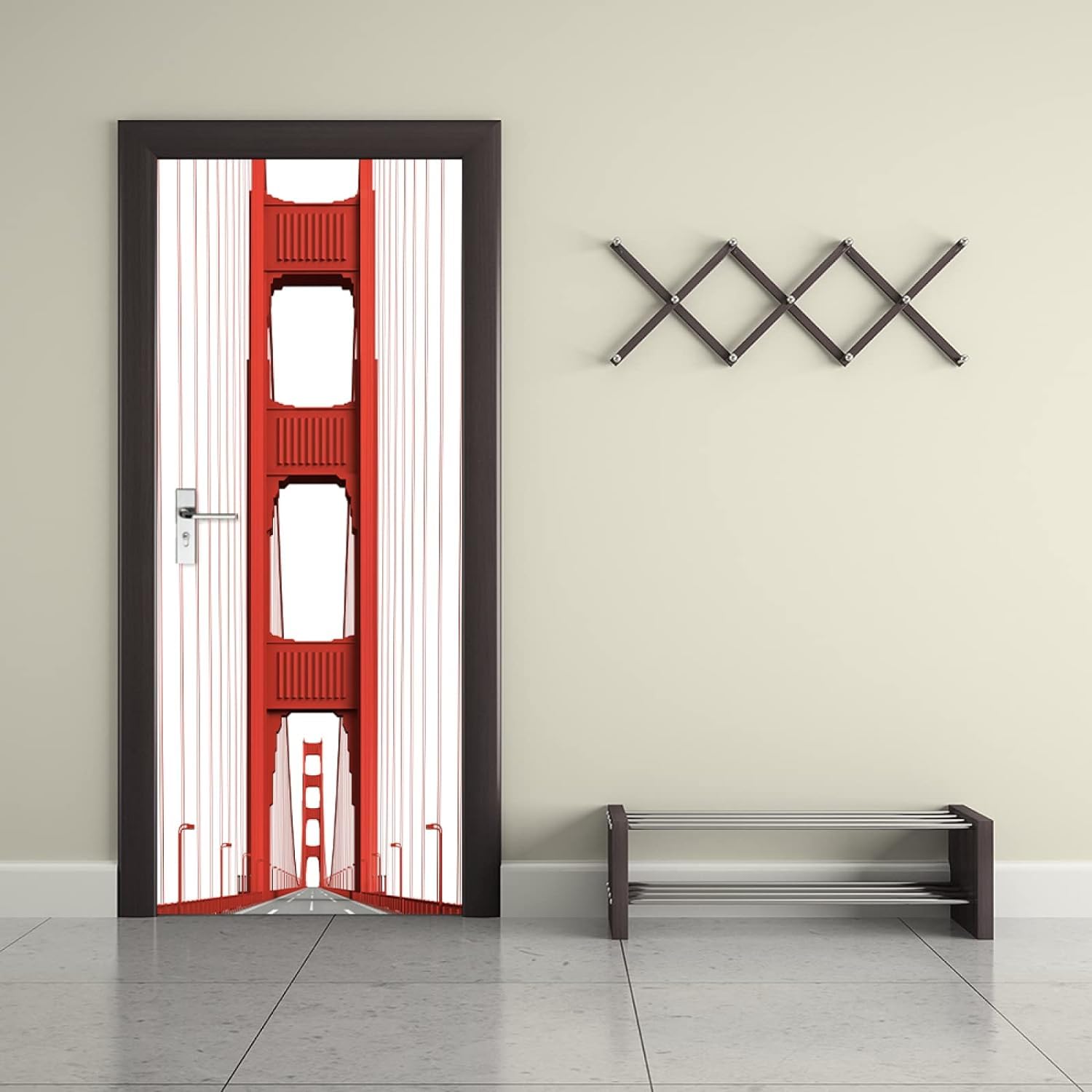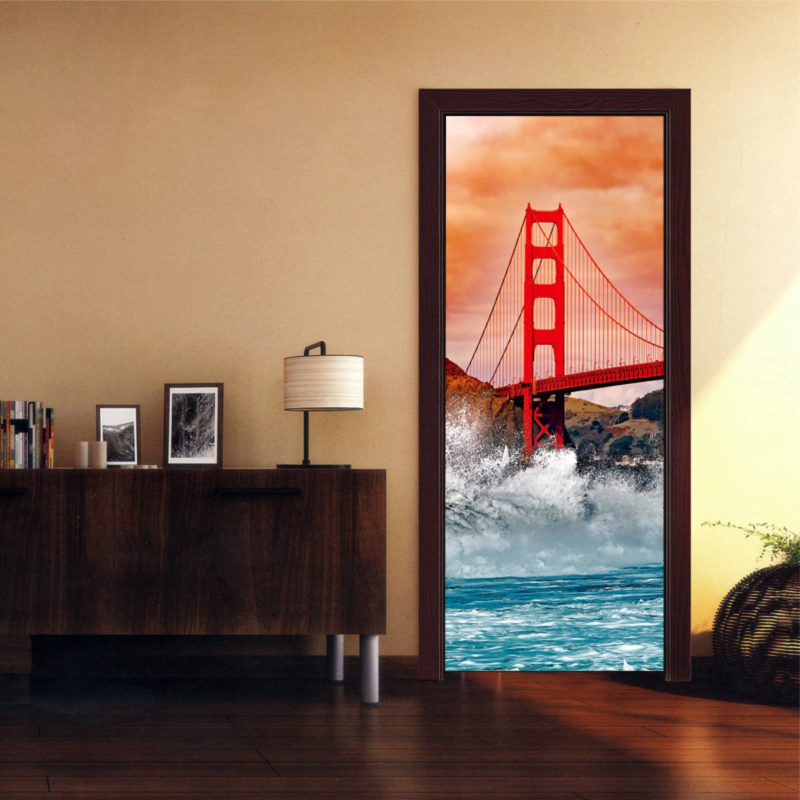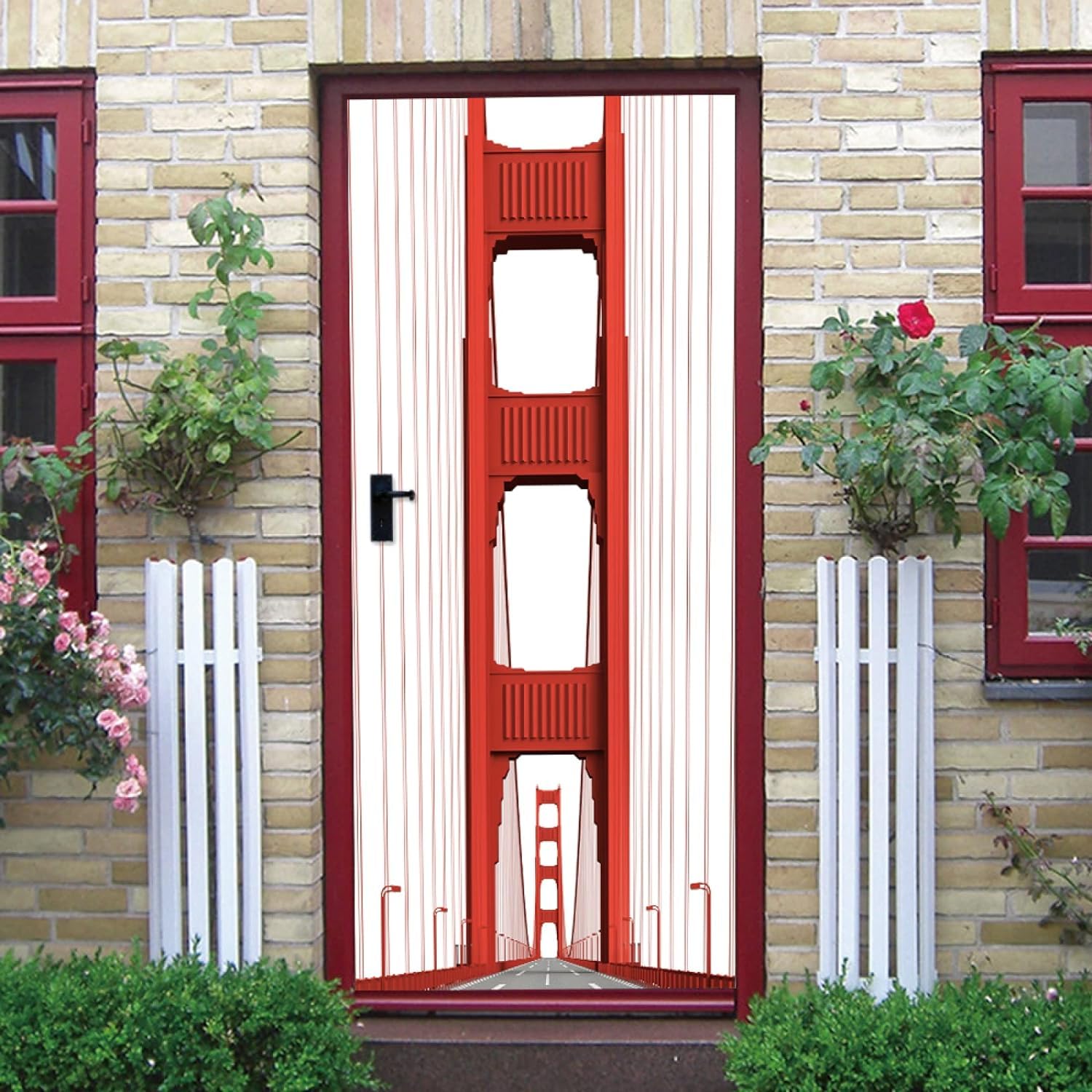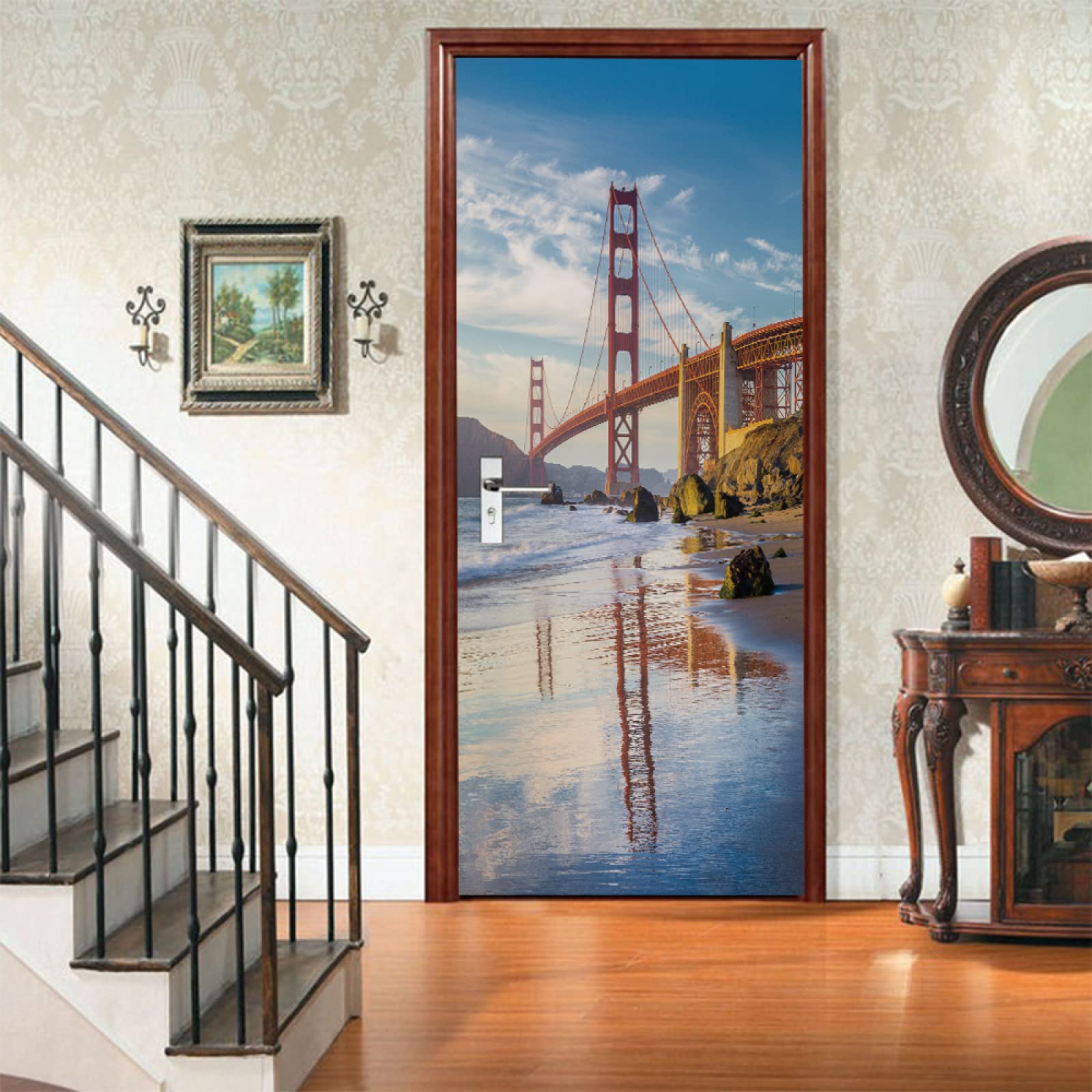 Verwandle deine langweilige Tür in ein spektakuläres Kunstwerk! Dieser selbstklebende Golden Gate Bridge Aufkleber mit 77x200 cm Größe bringt sofort kalifornisches Flair in deine vier Wände. Hergestellt aus hochwertigem, wasserdichtem PVC-Material das sich rückstandslos wieder entfernen lässt. Der realistische 3D-Effekt ist einfach umwerfend und schafft eine tolle Tiefenwirkung. Einfach Schutzfolie abziehen und auf jede glatte Oberfläche kleben - ohne zusätzliche Klebstoffe oder Werkzeuge. Perfekt für Schlafzimmer-, Büro- oder Wohnungstüren, aber auch für Wände, Kühlschränke, Schränke und Fliesen. Kratzfest, robust und leicht zu reinigen - einfach mit einem weichen Tuch abwischen. Im Set sind 2 Bahnen à 38,5x200 cm enthalten, die nahtlos zusammenpassen. Bevor du bestellst, miss lieber deine Tür aus, damit alles perfekt passt. In 24 Stunden erhältst du Hilfe bei Fragen - so wird dein Dekoprojekt zum Erfolg!
