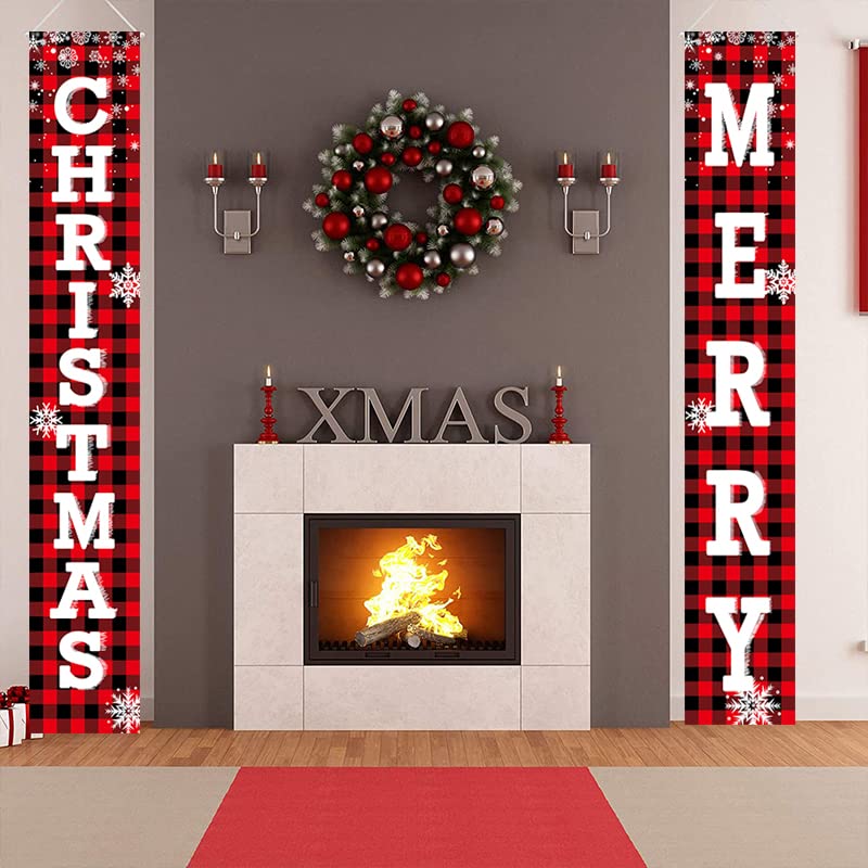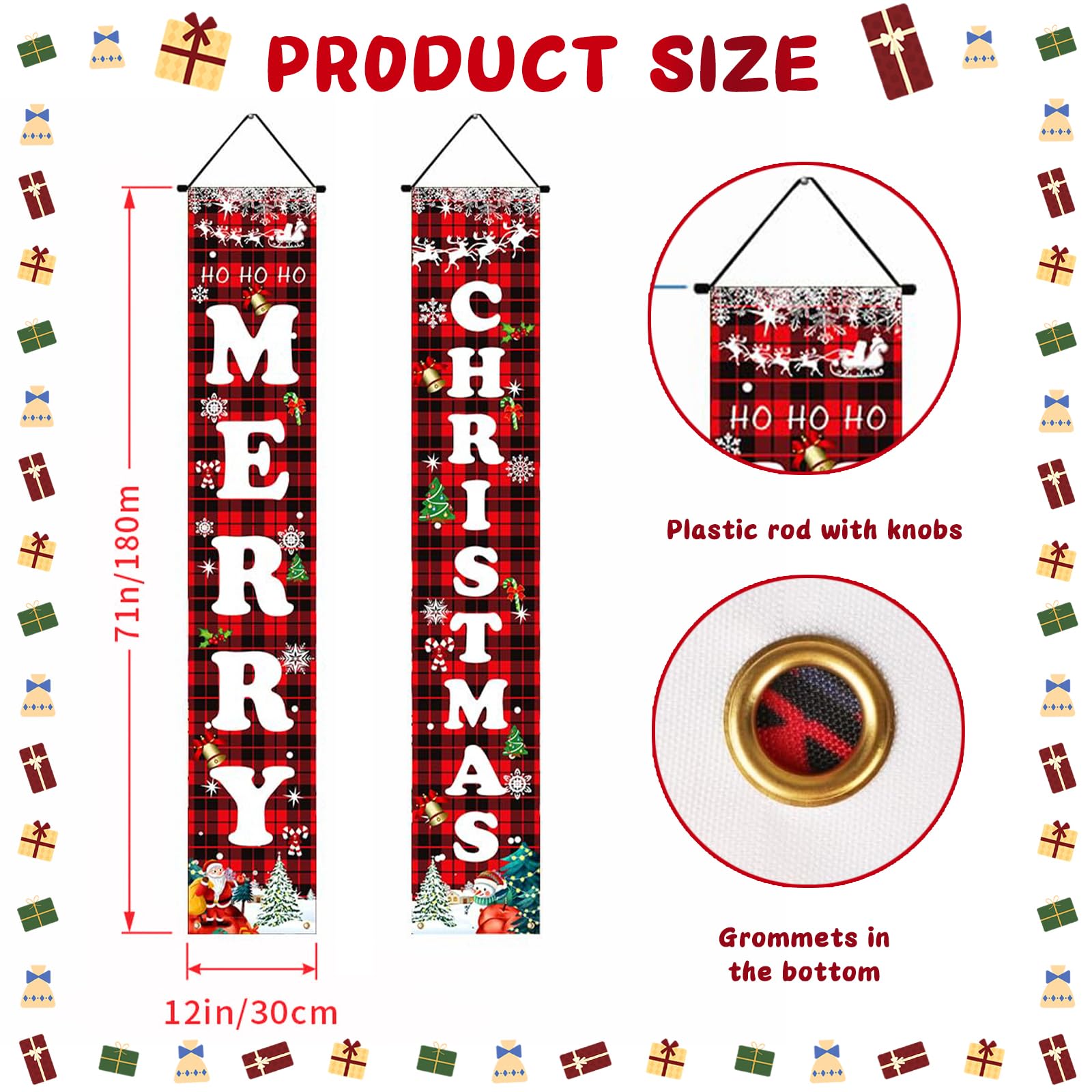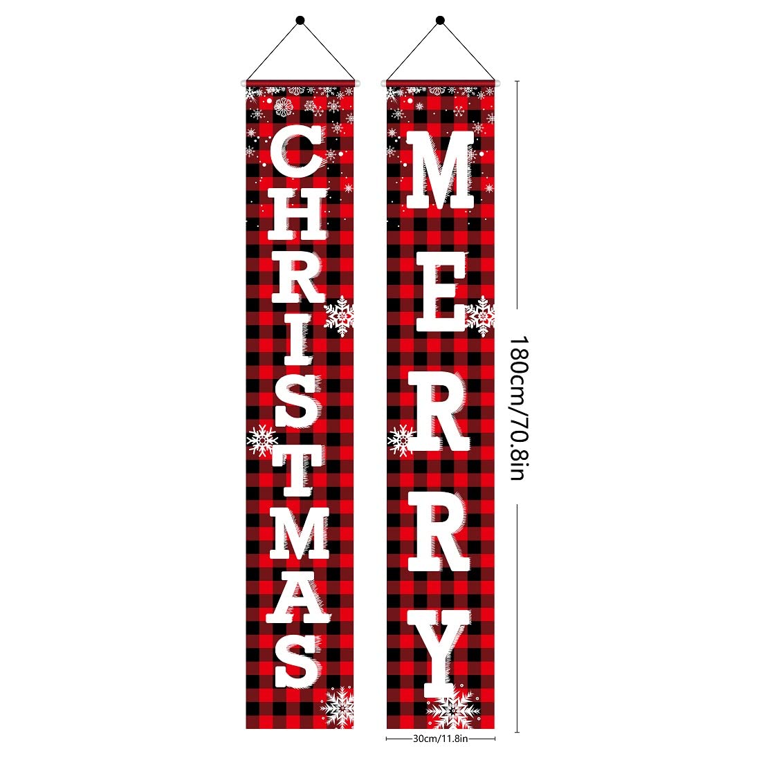 Boah, damit wird dein Zuhause zur Weihnachtswunderland! Diese riesigen Türbanner sind jeweils 180cm lang und 30cm breit - die sieht man schon von Weitem! Im klassischen Buffalo Plaid Design in Rot und Schwarz mit süßen Weihnachtsmotiven wie Weihnachtsmännern, Rentieren und Tannenbäumen. \\n\\nDie Banner sind aus hochdichtem Gewebe und absolut wetterfest. Da macht auch Regen oder Schnee nichts aus - die Farben bleiben knallig! Mit den stabilen Stangen oben und unten flattern die Banner nicht weg, selbst bei starkem Wind. \\n\\nEgal ob an der Haustür, Garagentor, Gartenzaun oder an der Wand im Wohnzimmer - überall sorgen sie für festliche Stimmung. Auch für Büros, Läden oder Restaurants super geeignet! Einfach aufhängen und dich an der gemütlichen Weihnachtsatmosphäre erfreuen. Deine Nachbarn werden neidisch sein!