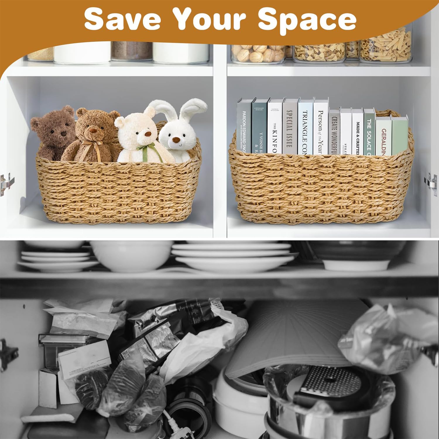Ordnung muss sein - und zwar stylisch! Dieses 4-teilige Set aus geflochtenen Papier-Körben bringt System in dein Zuhause. Verschiedene Größen für unterschiedliche Bedürfnisse. Umweltfreundlich aus recyceltem Material, atmungsaktiv und stabil. Perfekt für Badezimmer (Kosmetik), Wohnzimmer (Zeitschriften), Kinderzimmer (Spielzeug) oder Küche (Lebensmittel). Die weichen Körbe haben keine scharfen Kanten und sind leicht zu reinigen. Stapelbar für platzsparende Aufbewahrung. Mach dein Zuhause ordentlich und schön!
