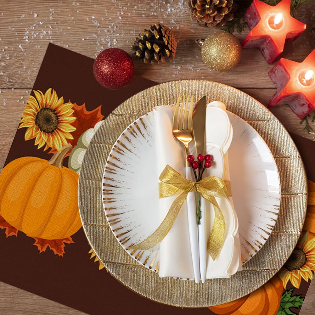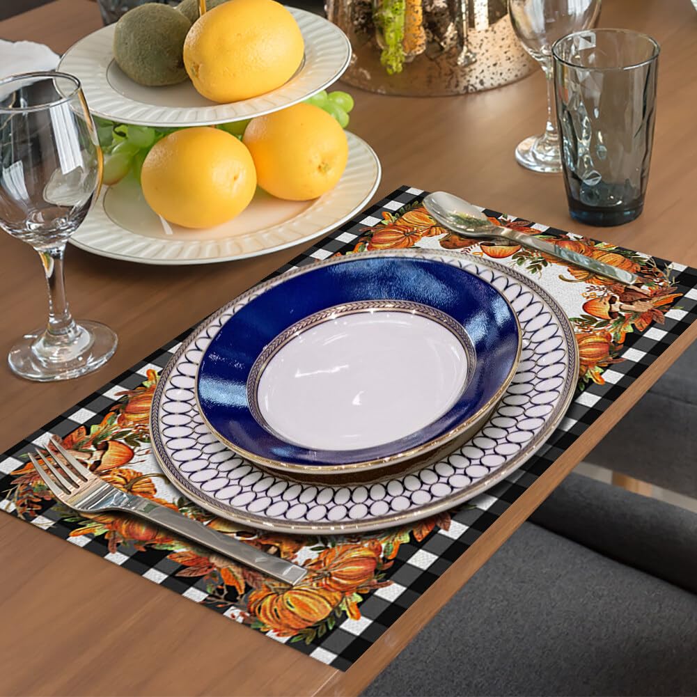 Verwandle deinen Tisch in eine herbstliche Pracht mit diesen entzückenden Kürbis-Tischsets! Das 4er-Set in goldener Farbe bringt sofort Thanksgiving-Stimmung in dein Zuhause. Hergestellt aus hochwertigem PVC, sind die Sets hitzebeständig und rutschfest - deine Gläser und Tassen bleiben sicher an ihrem Platz. Mit den Maßen 36x36 cm bieten sie genug Platz für Trinkgläser, Kaffeetassen, Teetassen und Weinflaschen. Die liebevolle Verarbeitung mit hohlem Kürbismotiv verleiht jedem Tisch ein stylisches und ansprechendes Aussehen. Perfekt für Esszimmer, Küche oder festliche Tafeln. Diese Tischsets sind nicht nur praktisch, sondern auch eine wunderschöne Dekoration für die Herbstsaison. Einfach abwischen und immer wieder verwenden!