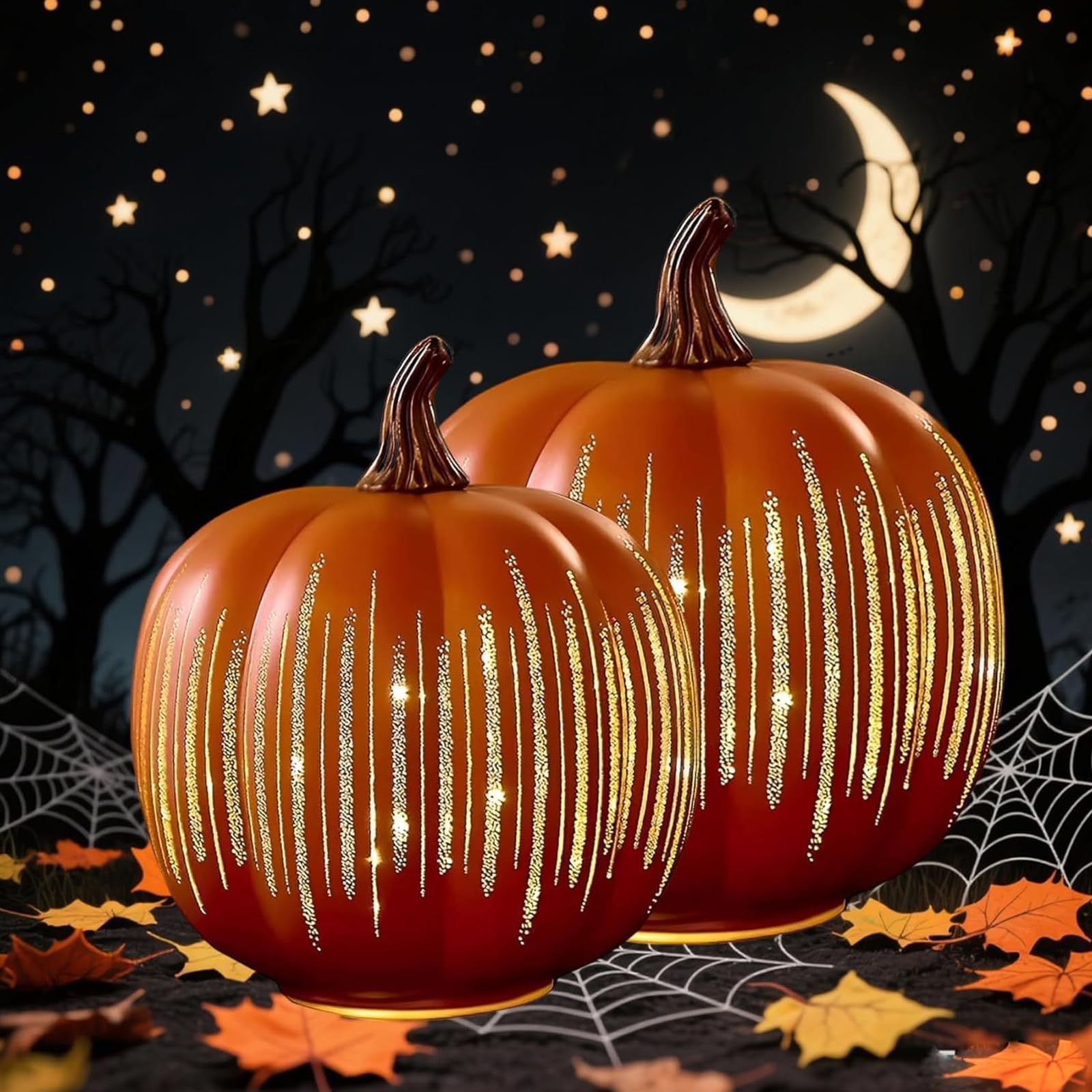 Verzaubere dein Zuhause mit diesen magischen Glaskürbissen! Die batteriebetriebenen LED-Lichter in den Kürbissen schaffen eine wunderschöne, warme Atmosphäre - perfekt für Halloween oder die gemütliche Herbstzeit. Das Sternennacht-Design auf den Glaskürbissen sieht tagsüber dekorativ aus und nachts, wenn das Licht angeht, einfach atemberaubend. Mit 3 AAA-Batterien betrieben (nicht im Lieferumfang) sind sie super flexibel aufstellbar - ob auf dem Tisch, im Regal oder im Garten. Hochwertig verarbeitet aus Glas, sind diese Kürbisse nicht nur eine tolle Deko für dich selbst, sondern auch ein wunderbares Geschenk für Halloween-Fans. Schaffe dir deine eigene magische Herbststimmung - diese Kürbisse machen jeden Raum sofort gemütlicher!