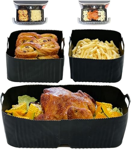 Schluss mit lästigem Putzen deiner Heißluftfritteuse! Diese 150 Backpapiere machen das Frittieren zum reinsten Vergnügen. Speziell zugeschnitten für Ninja AF500EU und Cecotec 9000 Modelle - 100 Stück für die 5,2L Fächer und 50 Stück für die größeren 10L/10,4L Schubladen. Aus hitzebeständigem, lebensmittelechtem Silikonpapier gefertigt, halten sie Temperaturen bis 232°C problemlos stand. Einfach in die Fritteuse legen, Essen darauf geben und nach dem Gebrauch entsorgen - keine schwierige Reinigung mehr! Das Papier ist öl- und wasserfest, beeinflusst aber nicht den Geschmack deiner Lieblingsspeisen. Perfekt für Pommes, Hähnchen, Gemüse oder sogar Kuchen. Auch für Mikrowelle und Backofen geeignet. Mach dein Airfryer-Leben einfacher und sauberer - mit diesen praktischen Backpapieren!