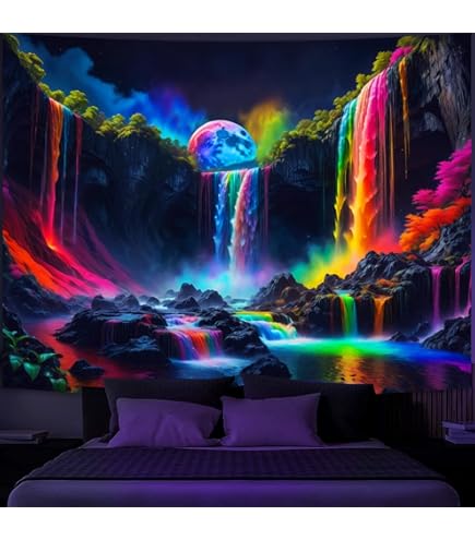 Wow-Effekt garantiert mit diesem BlissYard Schwarzlicht Wandteppich! Das riesige 198x149 cm große Kunstwerk zeigt ein niedliches Anime-Mädchen in knalligen Violett-Tönen. Unter Schwarzlicht beginnt es magisch zu leuchten und verwandelt dein Zimmer in eine neon-bunte Partyzone! Aus weichem Polyester gefertigt, ist der Wandbehang leicht und einfach aufzuhängen. Perfekt für Teenager-Zimmer, Wohnzimmer oder als krasser Fotohintergrund für Social Media. Das Design ist modern, ästhetisch und bringt sofort coole Vibes in jeden Raum. Ob für die nächste Party oder als Dauer-Deko - dieser Wandteppich ist ein absoluter Hingucker! Einfach aufhängen und staunen, wie sich dein Zimmer verwandelt. Auch ohne Schwarzlicht sieht das Motiv mega aus!