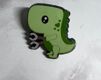 Stolz wie ein Dino! Dieser coole Tranosaurus Anstecker vereint die Stärke eines Tyrannosaurus Rex mit den Farben der Trans-Pride-Flagge. Ein wunderbares Symbol für Stärke, Individualität und Selbstbewusstsein.