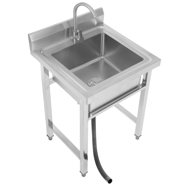 Brauchst du eine praktische Spüle für deine Garage, Waschküche oder Werkstatt? Dieses Edelstahl-Spülbecken ist genau das Richtige! Mit dem integrierten Abtropfgestell und dem mitgelieferten Kaltwasserhahn hast du sofort eine voll funktionsfähige Spüle. Die gebürstete Edelstahl-Oberfläche ist nicht nur robust und langlebig, sondern auch super leicht zu reinigen. Einfach mit einem Lappen abwischen und schon glänzt sie wieder! Die abgerundeten Ecken sehen nicht nur gut aus, sondern sind auch praktisch - keine scharfen Kanten, an denen du dich verletzen könntest. Das Spülbecken wird in einem Stück gefertigt, sodass keine Undichtigkeiten entstehen können. Der mitgelieferte Abflusskorb verhindert, dass Speisereste oder Schmutz den Abfluss verstopfen. Besonders praktisch: Die Spüle kann entweder direkt an der Wand oder über einer Arbeitsplatte montiert werden. So kannst du die Höhe genau an deine Bedürfnisse anpassen. Im Lieferumfang ist alles enthalten was du brauchst: Spüle, Hahn, Abflussrohr, Einlassrohr, Eckventil und Montagematerial. Perfekt für Hobbykeller, Werkstätten, Garagen oder auch für Gartenhäuser. Mit dieser Spüle machst du aus jedem Raum einen voll funktionsfähigen Arbeitsbereich!