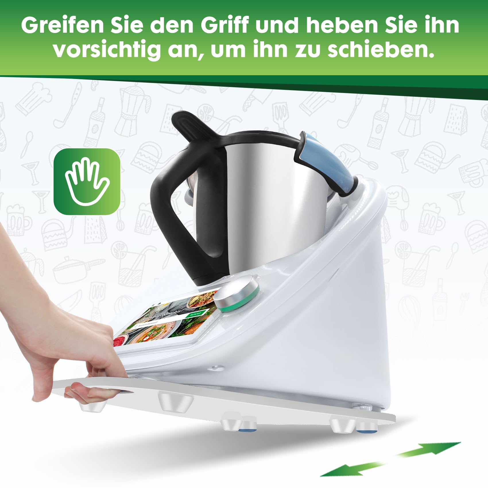 • AHANDMAKER Gleitbrett Für Thermomix TM6/TM5 | Acryl Unterlage Mit Griff | Küchen Arbeitsplatten Schutz